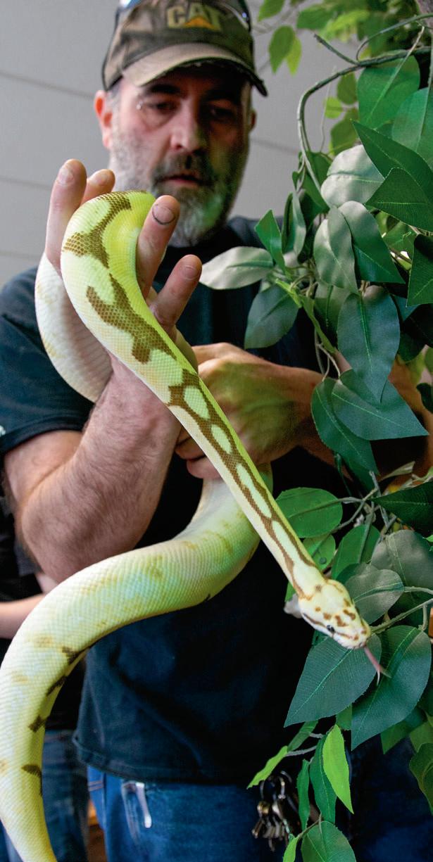 If it were up to my wife, we would be running a small zoo. Birds, fish, geckos — everything but snakes. We did have snakes in the office for a photo shoot. See our exotic pet feature on pg. 18. I will touch them, but I will not hold them. I don’t know if it’s a reptile thing or not. I think it would be hard knowing what they eat and that I can’t just open a container of fish food and sprinkle it in. Snakes require a level of commitment I’m not prepared for.
