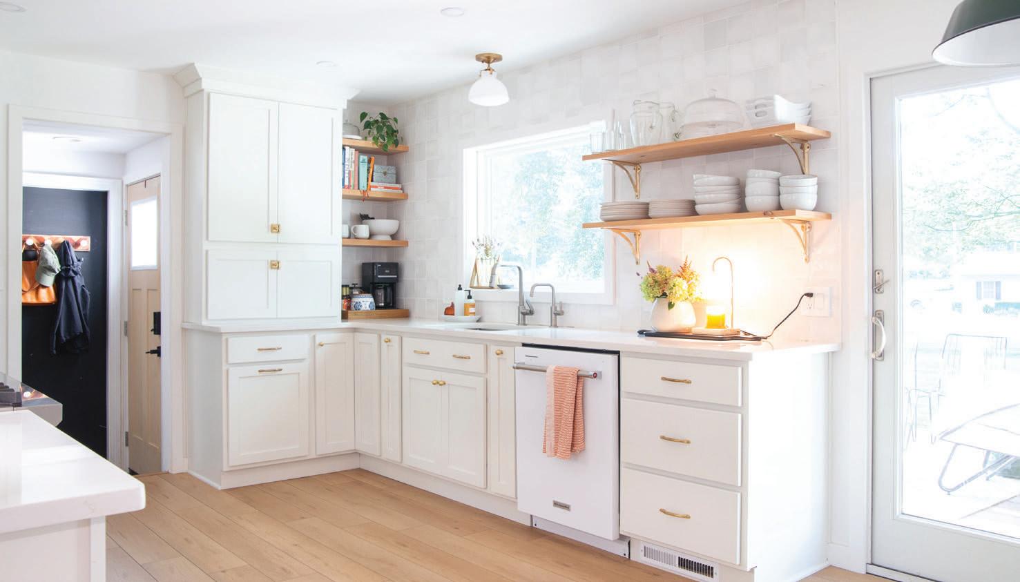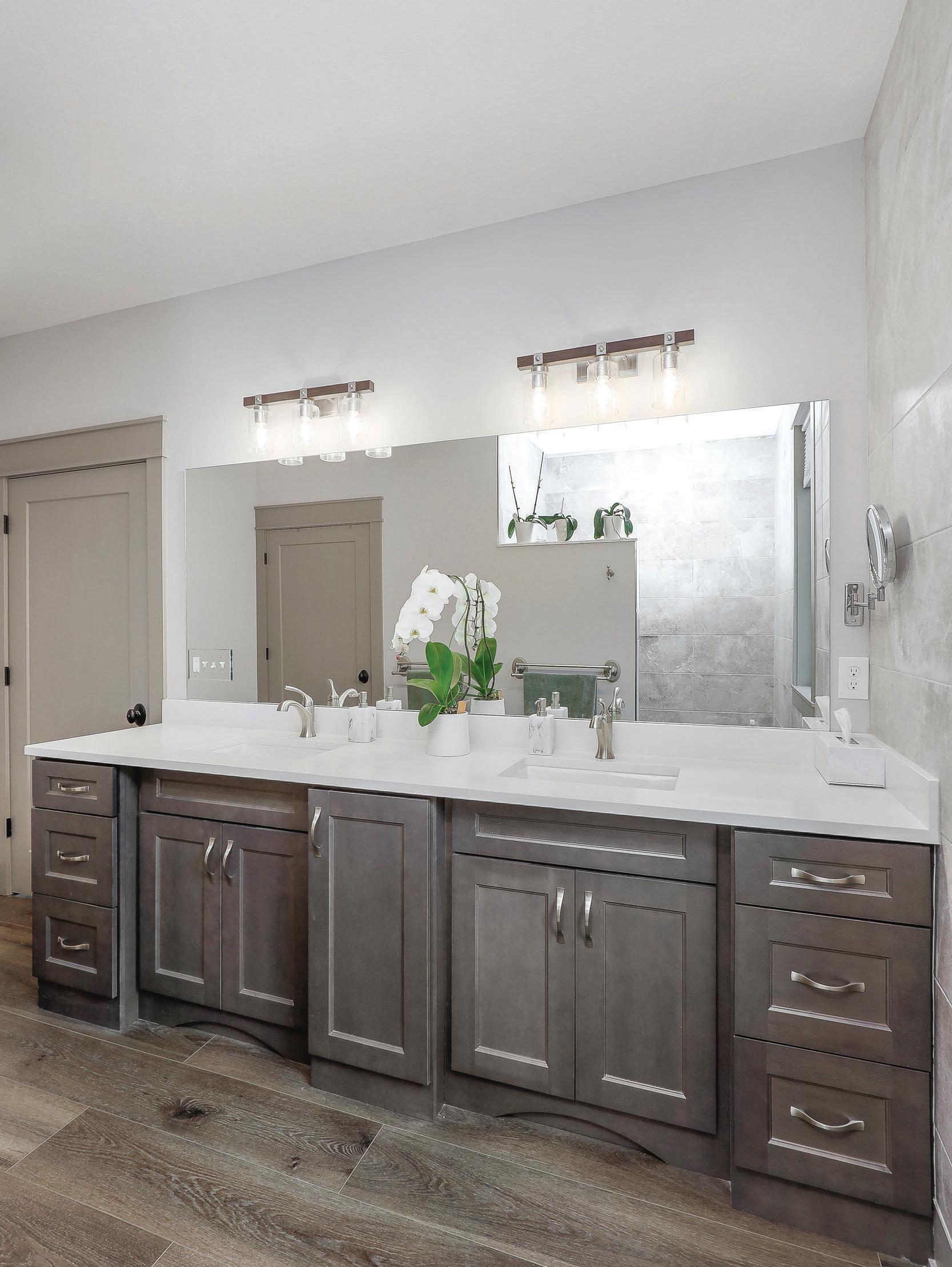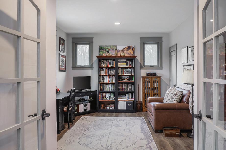 They reconfigured the driveway, widening the one-car garage. It’s now an extra-large two-car garage, with a ramp leading into the house. Every door is 3 feet wide, and all hallways are 4 feet wide. Calypso oakstyle luxury vinyl plank flooring, used throughout much of the first floor, creates a level surface