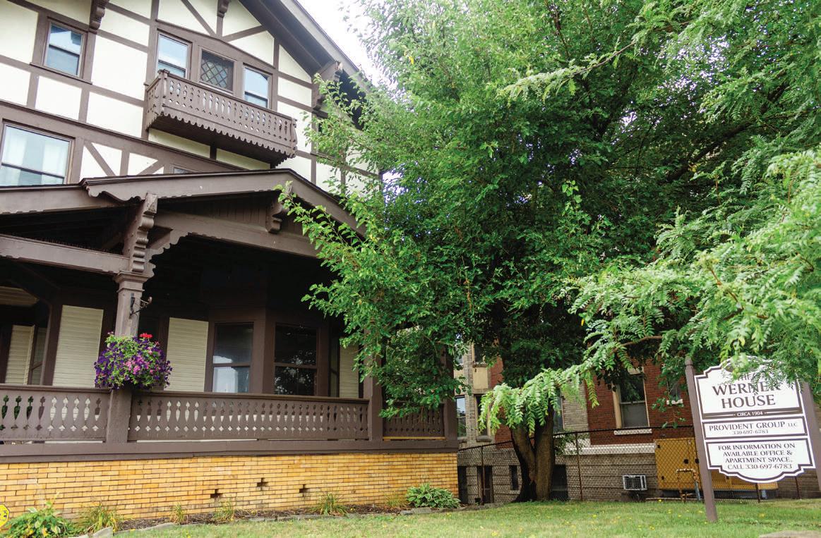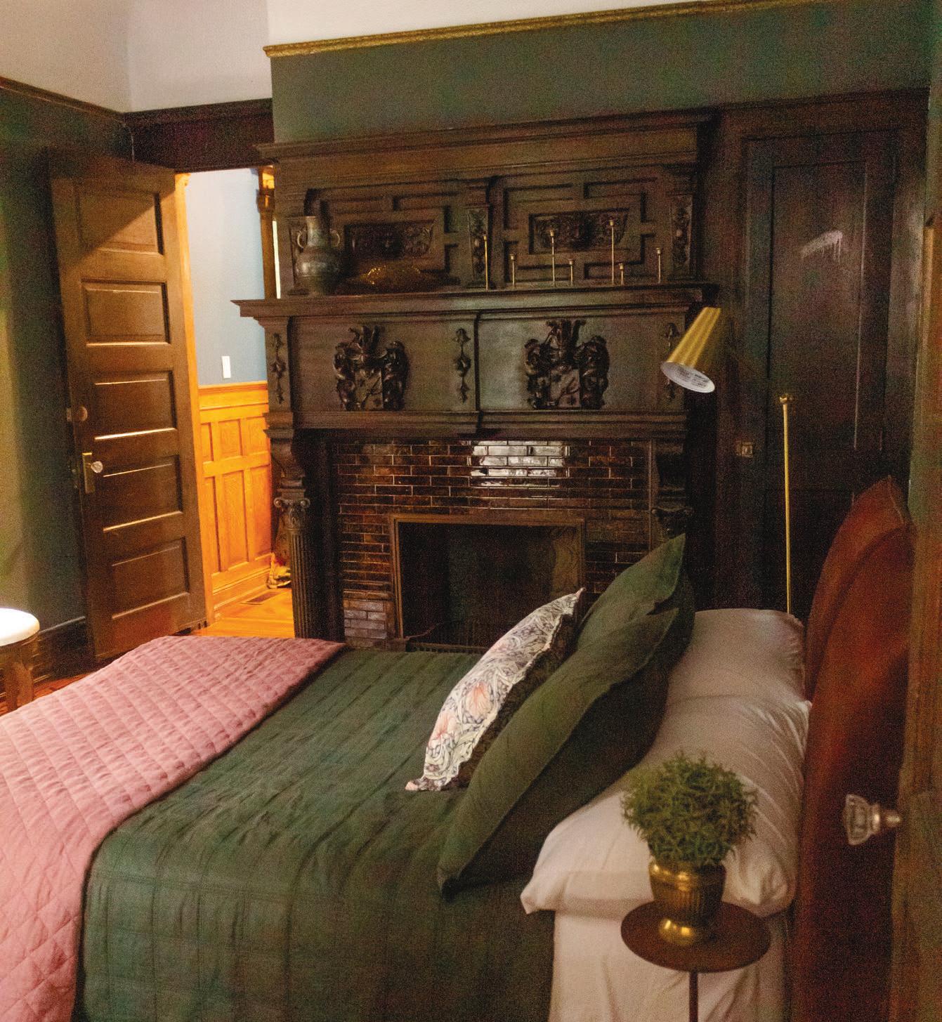 But when Kaser, the owner of Pillowtalkk Interiors & Upholstery, had a chance to redesign a 1905 house on West Market Street in Akron, she saw a lot of art nouveau and arts and crafts designs displayed in the home, which once belonged to Edward P. Werner, son of German immigrant and local publishing giant Paul E. Werner. She also saw the job — readying the 1,500-square-foot fourbedroom building for its recent launch as a short-term rental for up to 10 people — as a chance to be experimental with other vintage designs. Listed on the National Register of Historic Places, the Swiss chalet-style home required little construction, but the kitchen counters and sink, Kaser says, were replaced as an aesthetic choice. This offered a palette for the Pillowtalkk team’s full creativity in selecting furniture, wall-