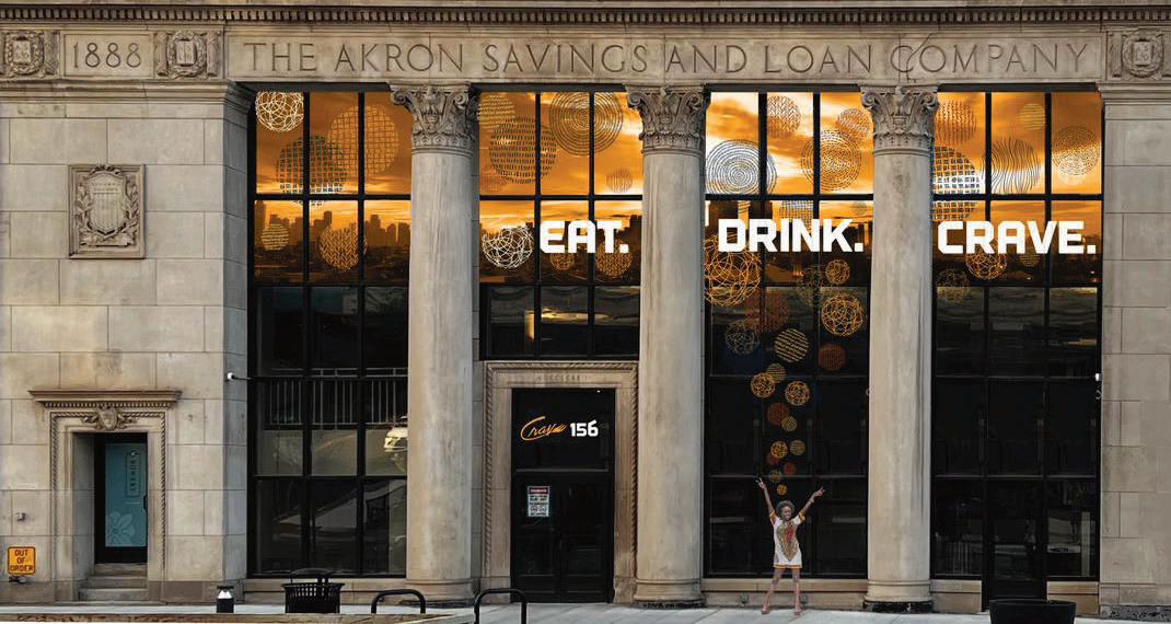 PS: There’s this fantastic light show that circles the [former Akron City Center Hotel] building at night. It’s mesmerizing to be walking down the streets and see other light shows or art installations in the windows of buildings as well. Another favorite is the mural by Lock 3.