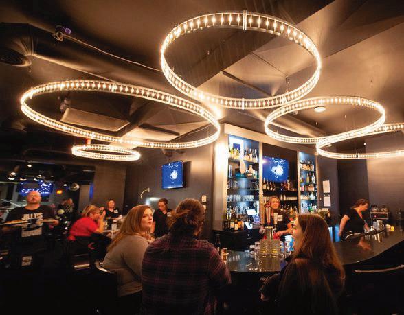paper and fixtures. “It looks like a big cool old house, but as soon as you walk in the door, you are transformed to another era,” she says. “It’s a hidden gem. … I gravitate to these types of projects. I can take larger risks. We were able to do a lot more of layering designs from different eras.”