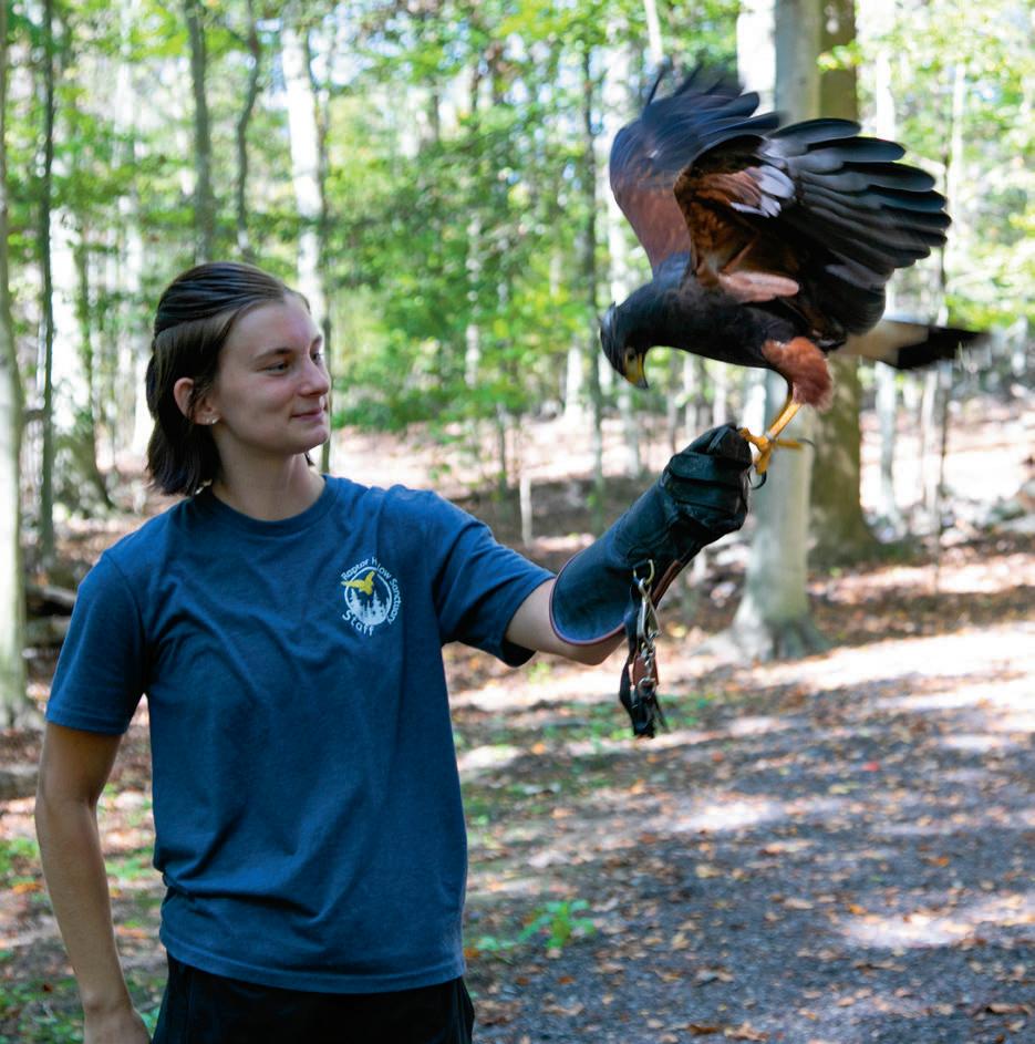 “Watching it fly by during a show or getting to meet it up close on someone’s glove,” Sommer says. “That really makes people realize that these animals are super cool and have a personality of their own and deserve to be cared for.”