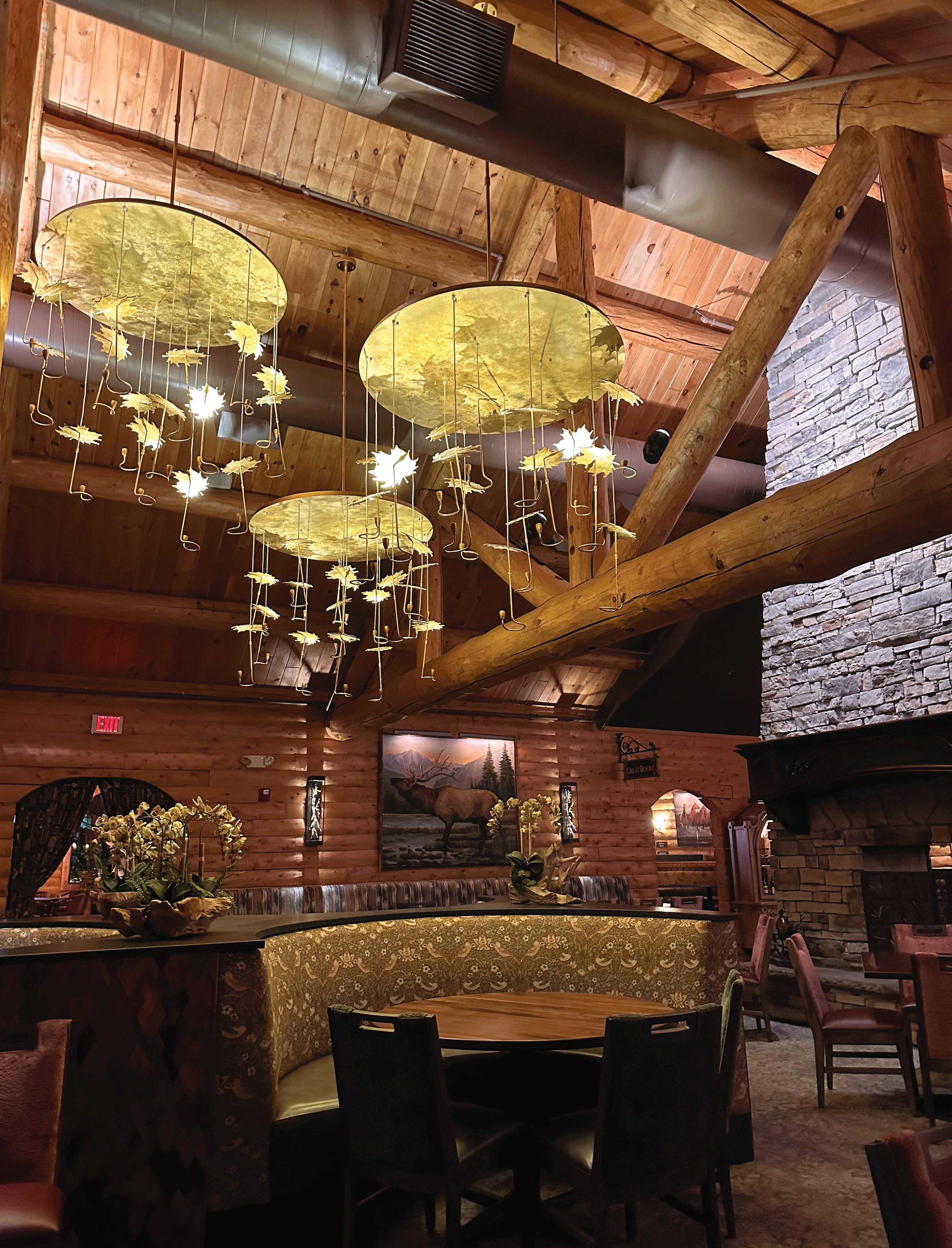 “Sometimes it felt weird to be served a dish that might be a Japanese preparation of tuna or maybe a Caribbean preparation of a lobster tail and eat that in a log cabin,” says culinary director Scott Coffman. “They wanted the decor to match the food.”