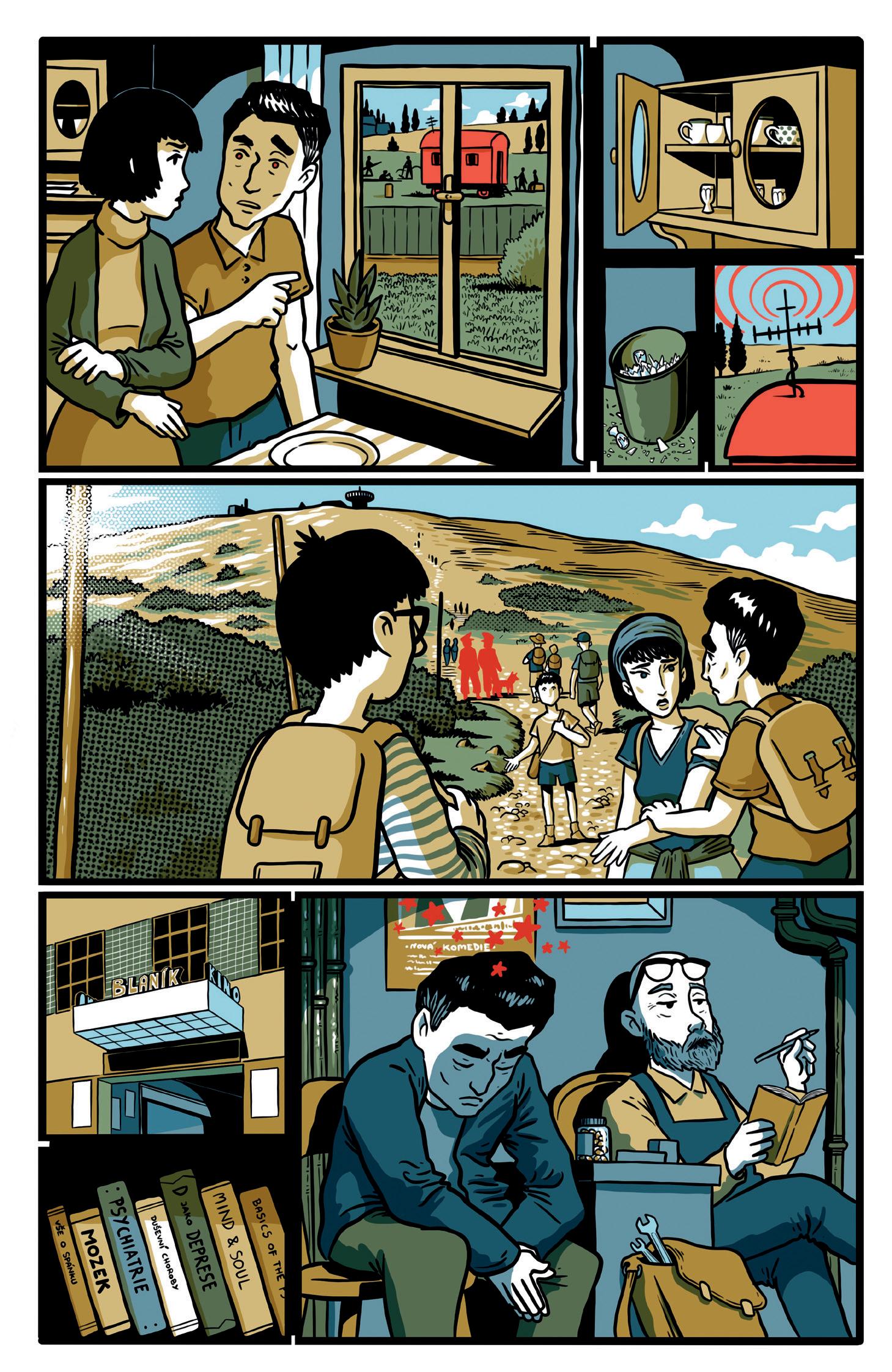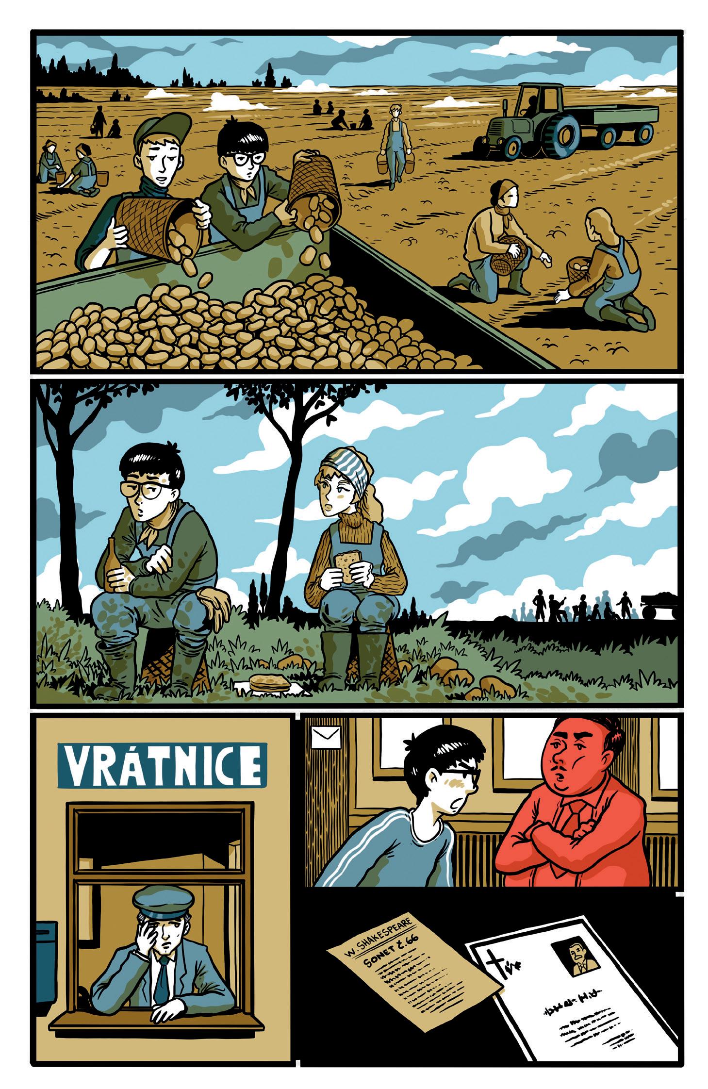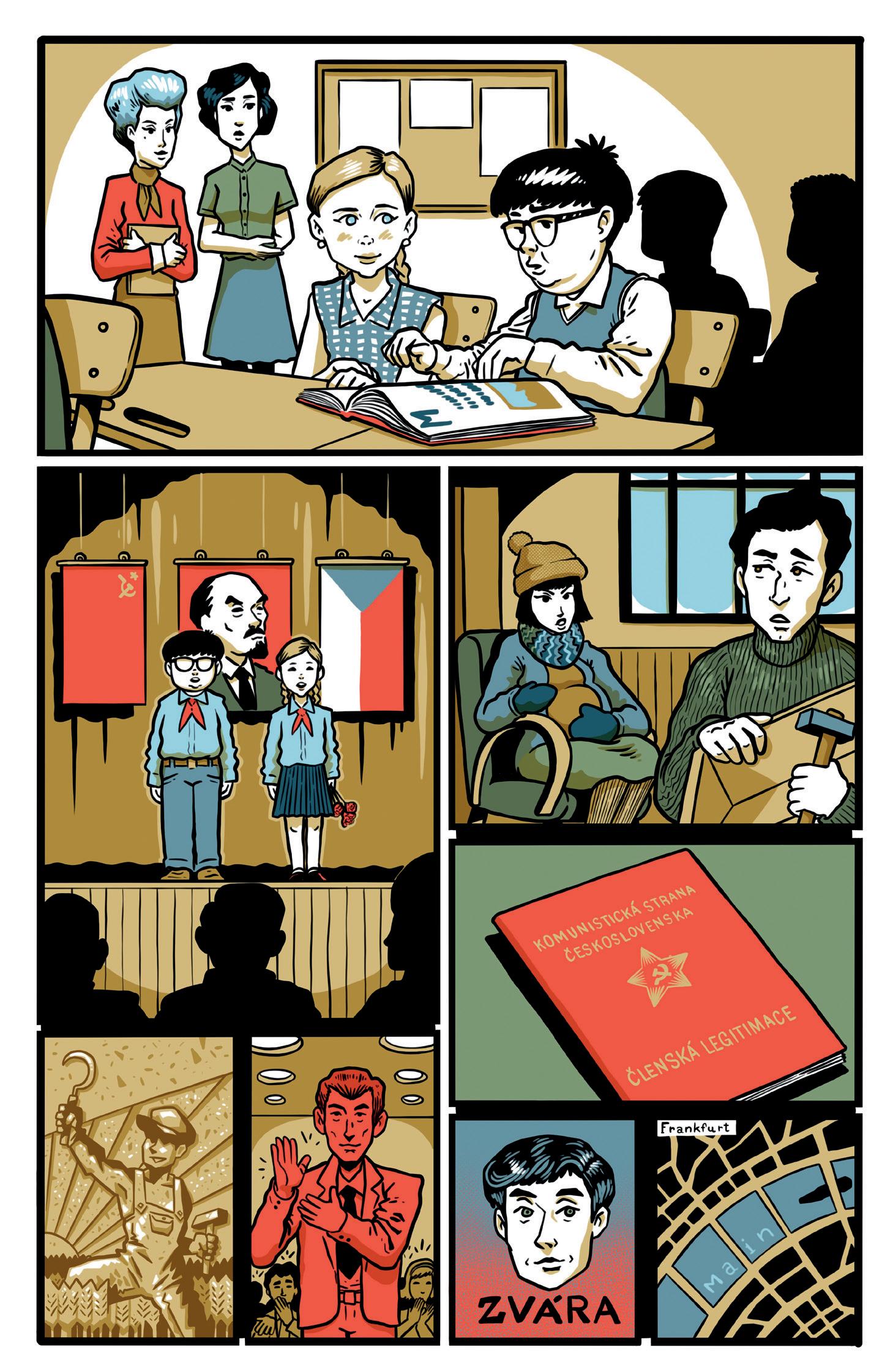 8| Když Kvido začal chodit do školy, musel s dalšími dětmi nahlas číst z učebnice Slabikář. Trénovali čtení slabik a jejich kombinací jako například O-TA, KO-LO, MLÉ-KO. Protože Kvido už ale uměl číst velmi dobře a byl zvyklý na literaturu, nemohl uvěřit, že kombinace slov v knize nemají další smysl. Banální věty jako EMA MELE MASO tak zněly v Kvidově interpretaci jako ukázka z existenciálního románu. Brzo se o novém žákovi dozvěděla i soudružka Šperková, vedoucí školního recitačního kroužku, a chtěla ho vidět. „Vstaňte, děti,“ zavolala soudružka učitelka Jelínková, když kolegyně Šperková jednou přišla do její třídy. „Sedněte si, děti,“ usmála se soudružka učitelka Šperková. „Přišla jsem si poslechnout, jak pěkně čtete.“ Když Kvido přišel na řadu a nahlas přečetl kousek z knížky, zeptala se ho: „Nechtěl bys s většími dětmi recitovat pěkné básničky?“ „Po pravdě řečeno, nevím,“ řekl pomalu Kvido. „Je to jen reprodukční umění. Asi bych raději zkusil napsat něco vlastního.“ „Ale psát bys mohl i tak,“ řekla soudružka Šperková překvapeně. „Nevím,“ řekl Kvido. „Nechám si to ještě projít hlavou.“ „Mohli byste recitovat společně s Jaruškou,“ řekla soudružka učitelka Jelínková a usmála se na Šperkovou. „Chtěla bys říkat pěkné básničky, Jaruško?“ Jaruška stydlivě přikývla a obě děti začaly chodit do recitačního kroužku. Brzy recitovaly na schůzích. Kvida, který recitoval dobře a velmi angažovaně, si lidé zapamatovali. audio online 3 | Báječná léta pod psa