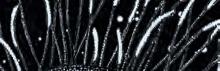 … správně, to je bublina. Plynové bubliny jsou pro některé druhy medúz velmi důležité, protože jim pomáhají plavat na hladině a volně plout po moři. Bublina má také obrannou funkci — může se částečně vypustit, což umožní medúze ponořit se do větší hloubky, když na hladině hrozí nebezpečí.