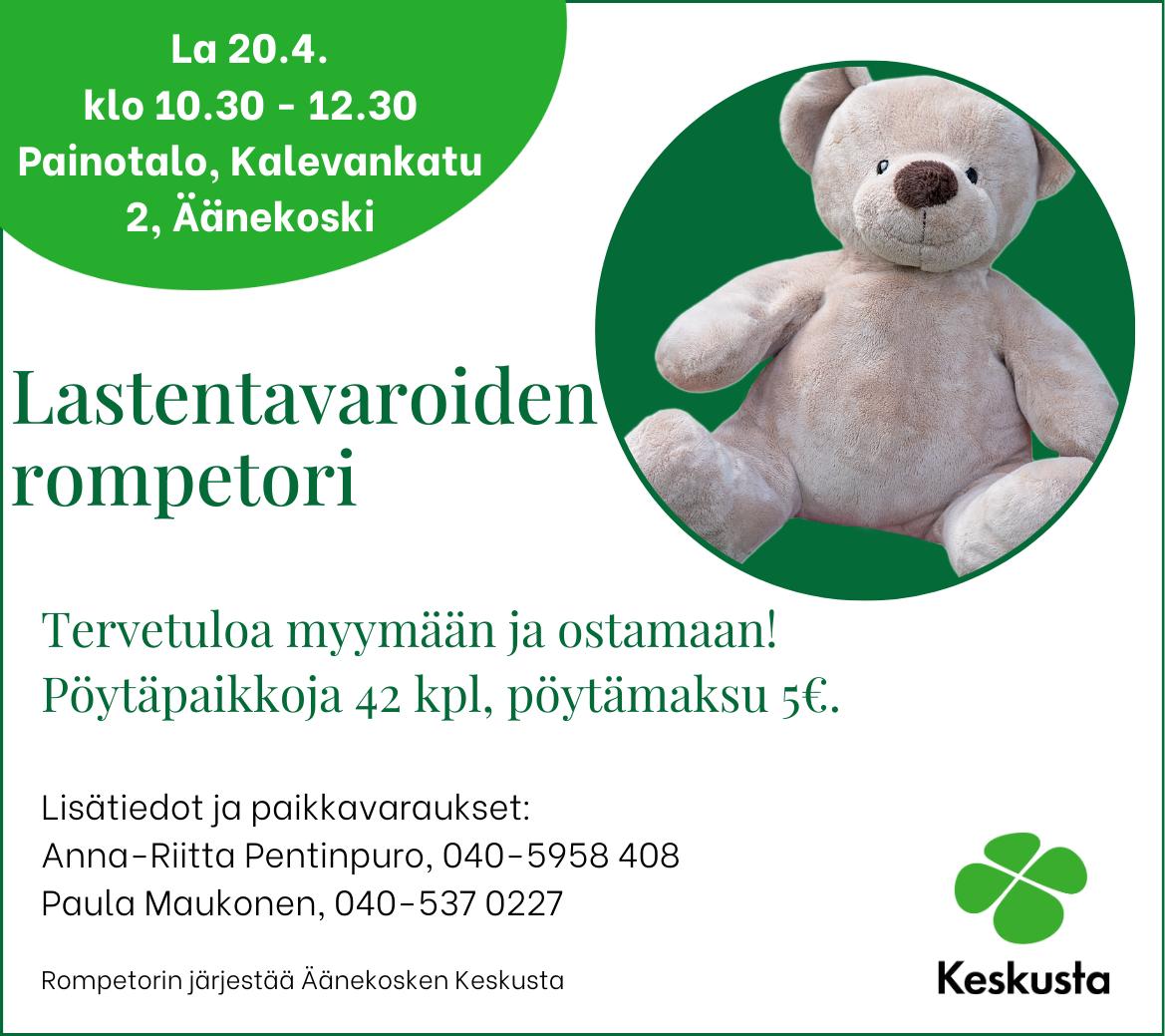 KOVASTI odotettu tapahtuma on taas käsillä. Laura-Liisa Hyytiäisen ideasta 15 vuotta sitten käyntiin lähtenyt Rompetori on niittänyt mainetta kuntarajojen ulkopuolelle asti. Lapsiperheiden ilolla vastaanottama Rompetori on oiva tapa kierrättää pieneksi käyneet vaatteet ja kengät sekä lelut. Laitetaan hyvä kiertämään tai ostetaan hyvää tavaraa käytettynä - siinä on koko jutun juoni.