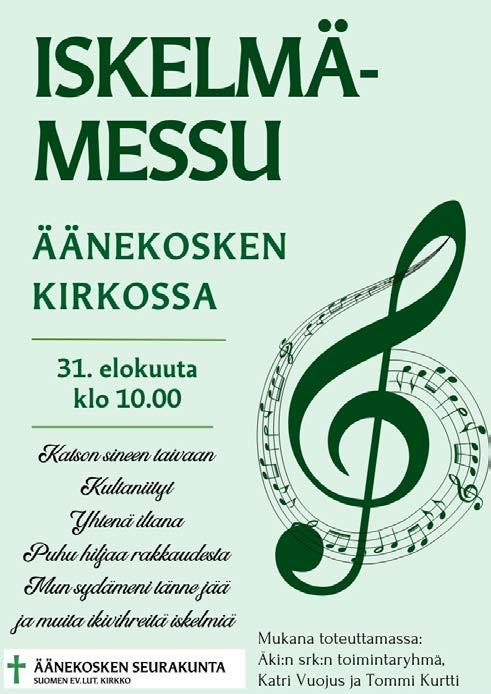 Ensi sunnuntaina järjestetään Äänekosken kirkossa iskemämessu, joten sielläkin pääsee yhteislaulun makuun ja nostalgisten laulujen pariin.