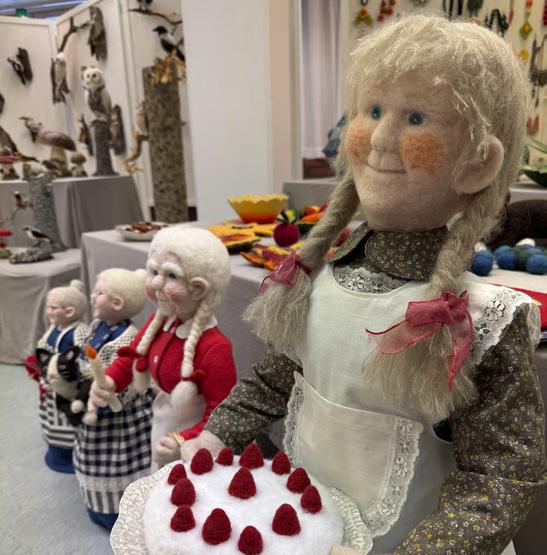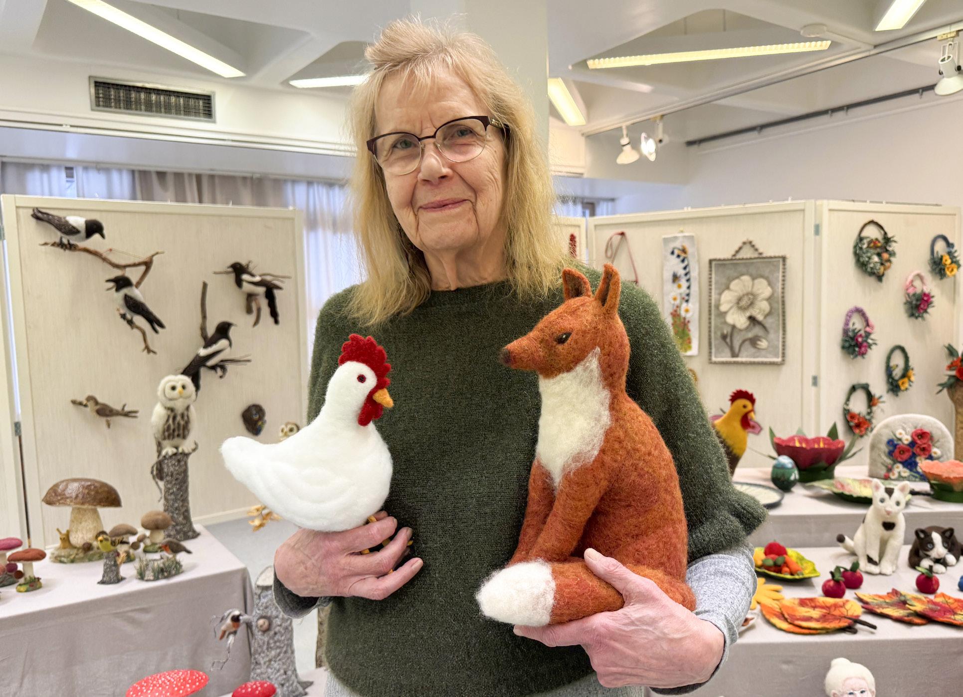 – Hietamalla asuessa tein ensin paperimassatöitä. Kun tuli halu kokeilla uutta, löysin neulahuovutuksen, Regina Oksanen sanoo.