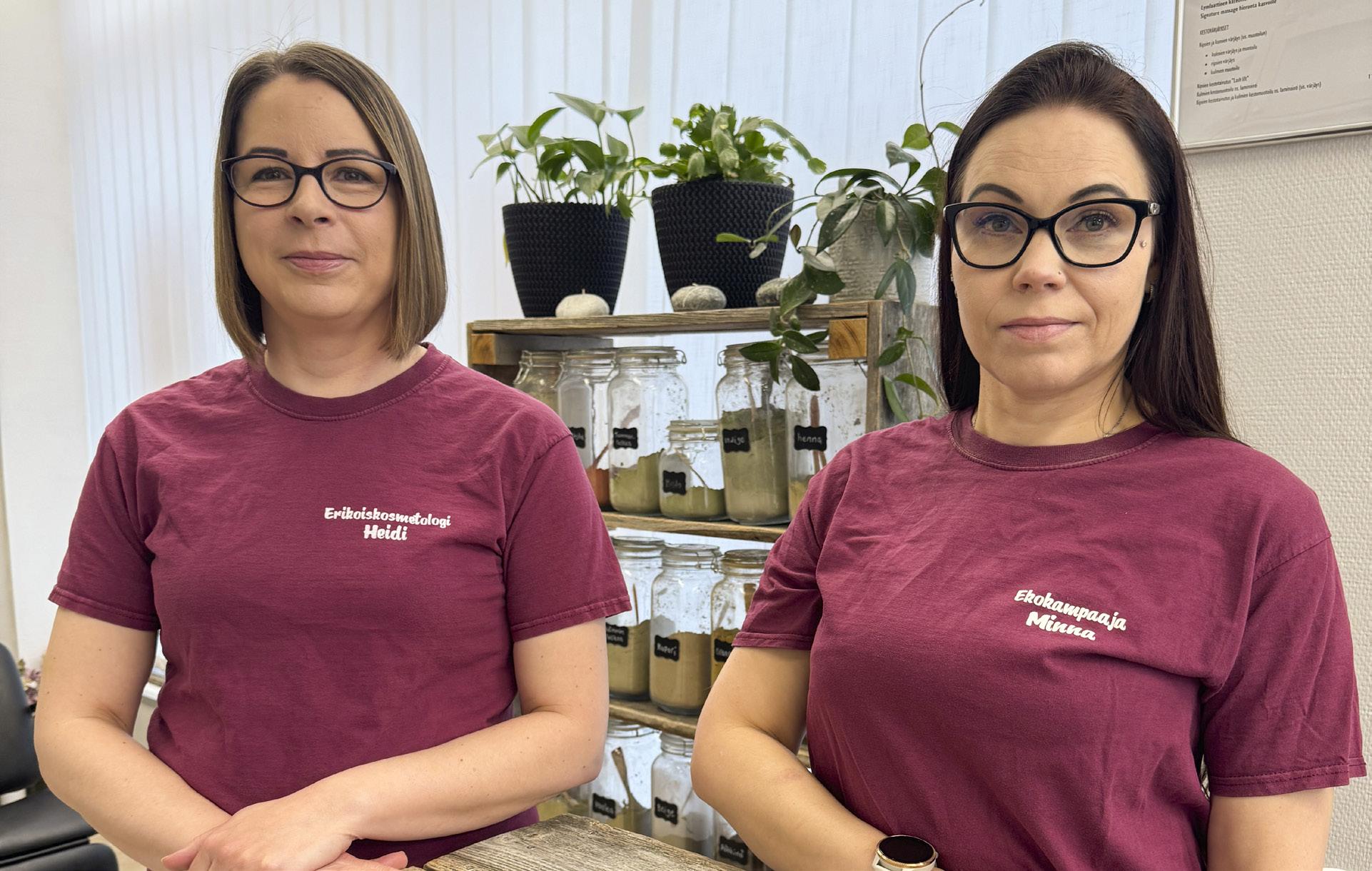– Tervetuloa tutustumaan. Uusi tila mahdollistaa moneen, ja luvassa on rentoutushoitoja, hiusanalyysejä ja Satu Sällisen opastuksella tutustumista villiyrtteihin joista voidaan valmistaa hiusöljyä, saippuaa ja kylpypommeja, Minna Waris ja Heidi Kupsu vinkkaavat.
