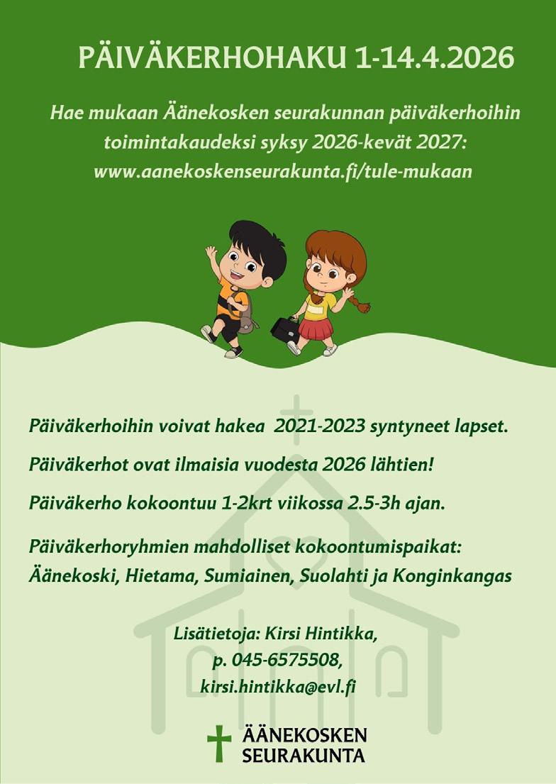 Lisätietoja antaa: Iiris Terävä (Keski-Suomen elinvoimakeskus), p. 0295021119, iiris.terava@elinvoimakeskus.fi Jukka Karppinen (Äänekosken kaupunki), p. 0405591632, jukka.karppinen@aanekoski.fi