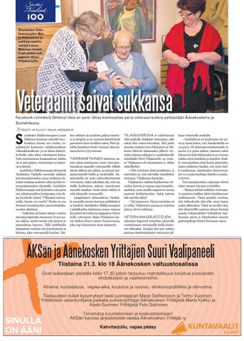 hin sukkiin on neulottu paljon tunnetta ja lämpöä, ja ne varmasti lämmittävät paremmin kuin tavalliset sukat, Päivi Junikka hankkeen Keski-Suomen aluevastaava kertoi tyytyväisenä. TÄMÄNHETKINEN ohjeistus on, että sukat toimitetaan ensin veteraanitunnuksen saaneille veteraaneille. Mikäli tämän jälkeen jää sukkia, ne jaetaan tunnuksettomille lotille ja sotaleskille. Äänekoskella on noin nelisenkymmentä veteraania, mikä tarkoittaa sitä, että osa täällä kudotuista sukista toimitetaan muualle maahan: sinne missä sukkia ei riitä jokaiselle veteraanille. Lämpimässä tilaisuudessa Vanhalla asemalla juotiin kotoisat pullakahvit ja kuultiin Suolahden Eläkkeensaajien Laulukkaiden laulamana muun muassa kyyneleet kirvoittavan kappaleen Kiitos teille veteraanit. Maija Piitulainen lausui Aleksis Kiven runon Suomenmaa, joka sopi tilaisuuteen kuin nakutettu.