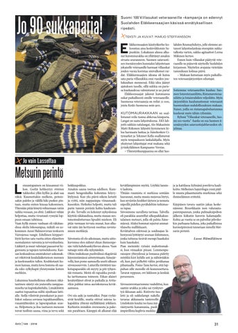 läkkeensaajien käsityökerho kokoontuu aina keskiviikkoisin Supunkiin. Lokakuun alussa alkanut kutomisurakka on yllättänyt ainakin sivusta seuranneen. Suomen satavuotisen itsenäisyyden kunniaksi lahjoitetaan jokaiselle veteraanille harmaat villasukat joiden varsia koristaa sinivalkoiset raidat. Eläkkeensaajien ideana oli kutoa sata paria villasukkia ensi vuoden joulukuuhun mennessä. Eikä idea jäänyt ajatuksen tasolle, sillä sukkia on parissa kuukaudessa valmistunut jo 90 paria! Eläkkeensaajat jakavat kutomansa sukat paikallisesti omille veteraaneille. Suomessa veteraaneja on reilut 21 000, joista Keski-Suomessa noin 900. KUTOMAURAKKAAN on osallistunut reilu tusina ahkeraa käsiparia. Langat on saatu lahjoituksena. ÄKS lahjoitti sukkiin raitalangat, Ale-Makasiinin Matti Riikonen lahjoitti kymmenen kiloa harmaata lankaa ja Äänekosken Citymarket ja Tekniset Kella osallistuivat myös tempaukseen lankalahjalla. Myös yksityiset lahjoittajat ovat mukana sekä jyväskyläläinen Kampaamo Verstas. – Yhteistyökumppanina on ollut Suo-