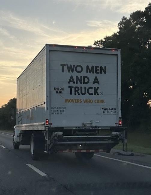The design also lacks personality. Without distinctive typography, graphics, or a logo, it fails to stand out from the plain moving trucks on the roads. Overall, this is poor typography because it communicates the basics but misses the opportunity to convey identity, hierarchy, and memorability.
