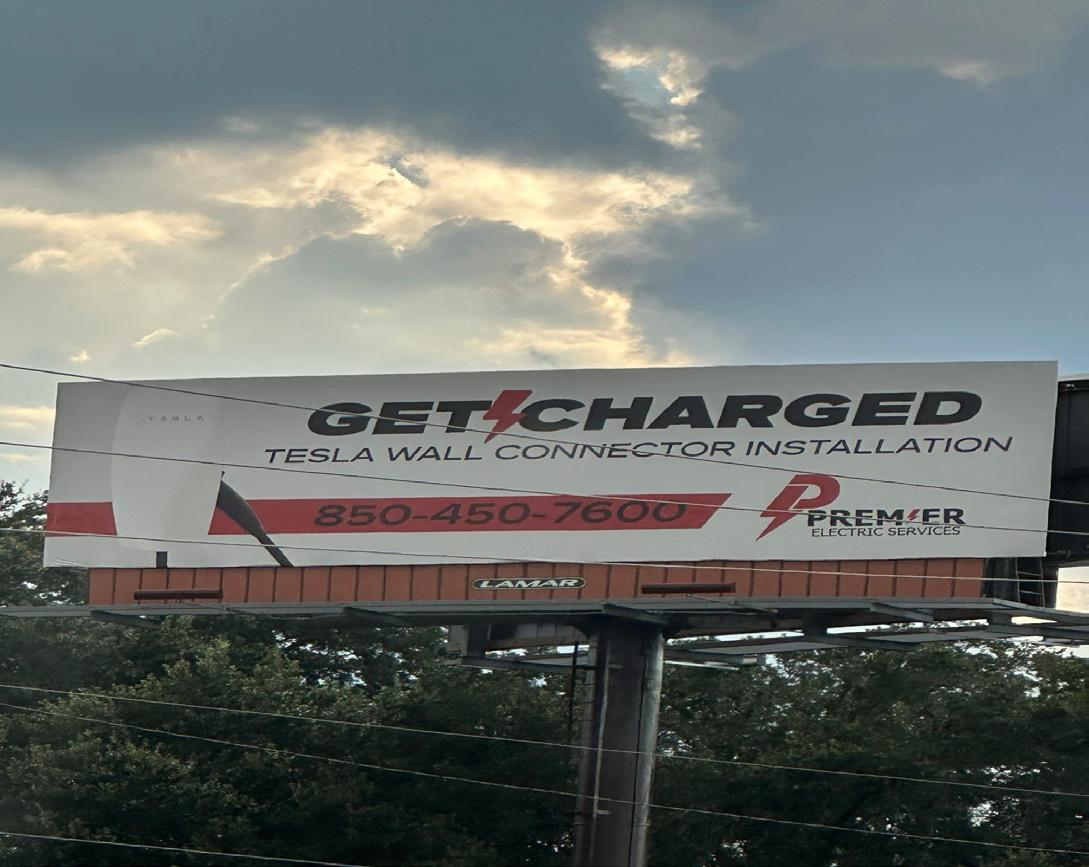 The hierarchy of information is also well established. The main message is the largest and boldest, ensuring it is first to be seen. The supporting text,”Tesla wall Connector Installation” is smaller but still clear, providing context after the headline draws attention. The phone number stands out in red within a shape, making it easy to locate and recall.