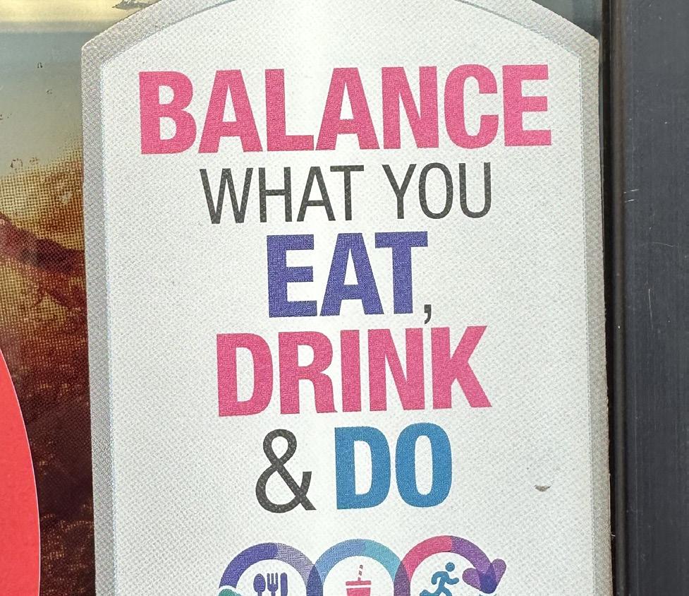 This photo I took is of a small sticker on a Coca-Cola vending machine. I think it has effective typography because it is well-balanced, has clarity, and hooks my visual interest. The first word seen, “BALANCE,” is important to the whole design and is displayed in bold and bright pink that very quickly grabs a reader’s attention. This makes the theme of the message in just one look. The following words, “EAT,” “DRINK,” and “Do,” are also shown in bright colors that easily make the words stand out and are distinguished, supporting the message’s main theme. I think that this sticker has interesting color diversity that helps enhance these specific keywords.