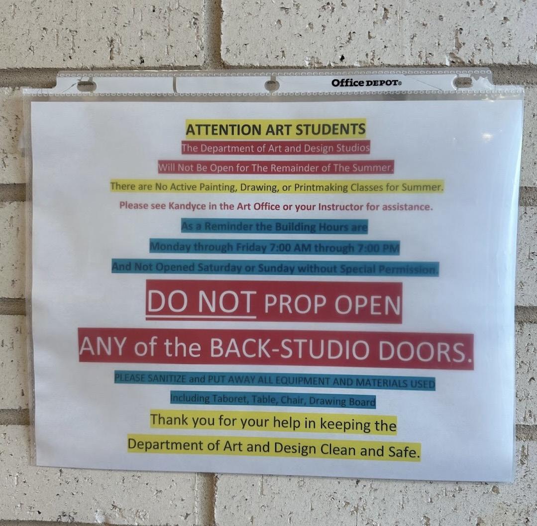 I also found this poster on my way to class. Although it immediately caught my attention, it was because I thought it would be a good example for this very project. It lacks visual hierarchy, consistency, and readability. The overuse of colors, font weights, and with everything highlighted creates visual clutter, making it difficult to actually read it and unsure of where to even focus. For example, the bold red “DO NOT PROP OPEN ANY of the BACK-STUDIO DOORS” is intended to be the most important message, but it competes with other highlighted phrases in yellow, blue, and red. Instead of creating emphasis, the excessive variation rids the massage of clarity and overwhelms the viewer.