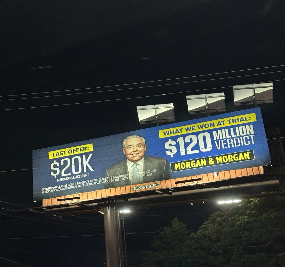 At dinner one night this week I saw this billboard out near the restaurant and I thought it could be a poor example of typography. It lacks visual hierarchy, balance, and clarity and the use of multiple font sizes and weights creates confusion rather than guiding the viewer’s eye smoothly through the information. While the intent is to emphasize the large verdict amount, the surrounding text butts heads for attention instead of supporting the message. The “$20K” and “$120 MILLION” are both in large, bold type, but the contrasting color schemes and inconsistent alignment make the layout feel too cluttered. The text spacing is tight and the overall composition feels cramped, especially given the limited time a driver has to read a billboard.