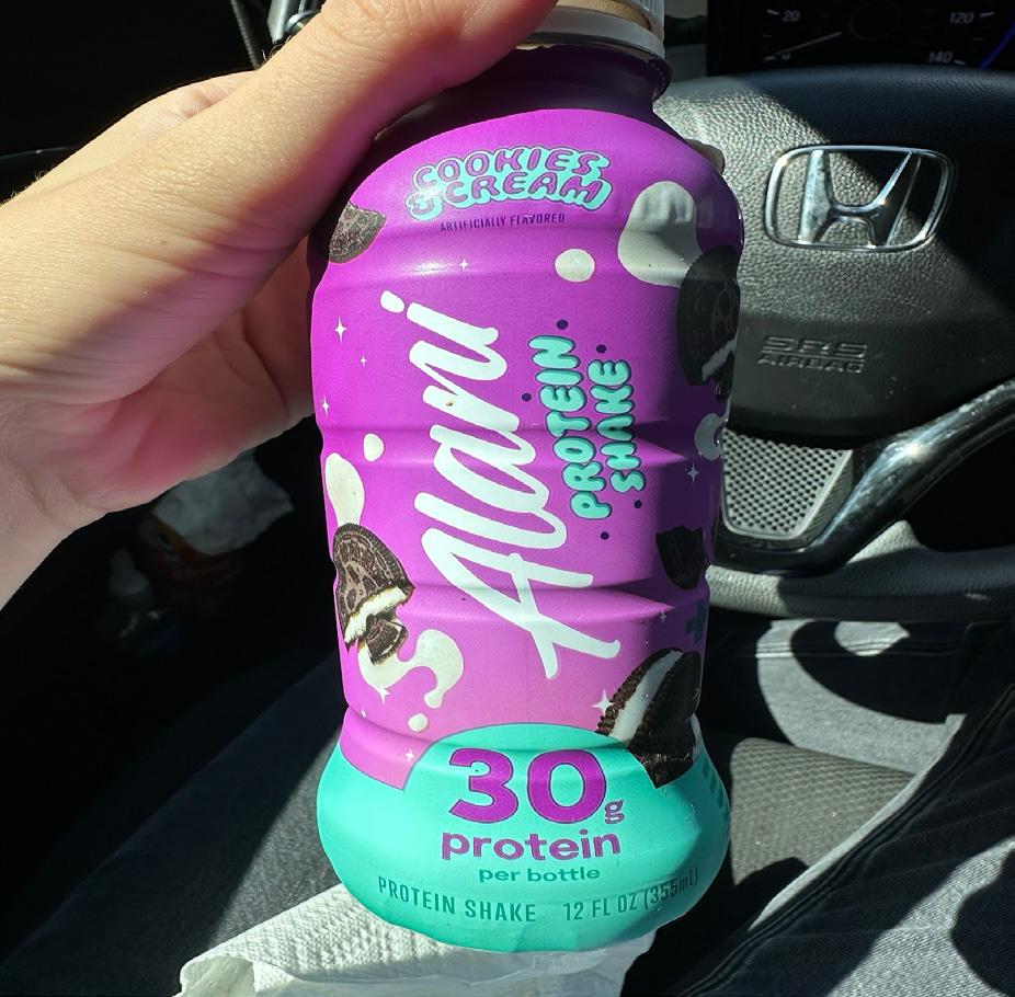 I drink these protein shakes often and the label always stands out to me. This protein shake label is a strong example of good typography because it successfully combines readability, hierarchy, and visual appeal to reinforce brand identity. The playful, handwritten-style logo “Alani” stands out prominently in white against a bold purple background, immediately drawing attention to the brand name. Its smooth, curved lettering complements the energetic and youthful tone of the product. The supporting text, like “30g protein” and “Cookies & Cream,” uses clean sans-serif fonts that balance the decorative logo and maintain legibility even at smaller sizes.