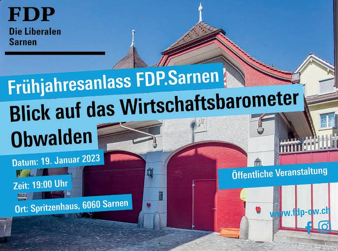 Do. 19.01., 19:00, Spritzenh Dorfplatz Frühjahresanlass FDP.Sarnen Blick aufs Wirtschaftsbarometer Obw.