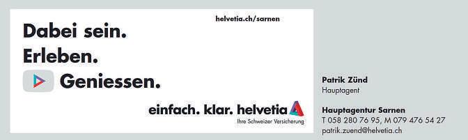 AKTUELL OBWALDEN AG Kernserstrasse 8, 6060Sarnen Tel. 041 666 27 30 E-Mail: aktuell@aktuell.com Internet: www.aktuell.com BereitsamDienstagabend online! Annahmeschluss: jeweilsDienstag, 12.00Uhr Auflage: 20’000 Exemplare Jeden Donnerstag in allen Haushaltungenvon Obwalden Polizei-Notruf 117 Sarnen 041 666 65 00 Engelberg 041666 68 00 Hausärztlicher Notruf 041 660 33 77 Notfallstation Kantonsspital OW041 666 41 20 Kantonsspital041 666 44 22 Medizinischer Notfall 144 Vergiftungen 145 Löwen Apotheke, Sarnen 041 660 11 55 Zahnärztlicher Notfall 1811 oder www.sso-uw.ch Feuerwehr 118 TCS/ACS-Pikett 140 REGA 1414 Dargebotene Hand/Jugend 143 /147 Jugend-, Familien- und Suchtberatung Kanton Obwalden 041 666 62 56 Bestattungen Röthlin,Sachseln 041662 29 00 Bestattungen Zumstein,Sarnen 041 660 14 18 Schlupfhuis.ch KITA/Spielgruppe 078 773 99 13 Tagesfamilien Vermittlung 041 660 20 30 www.kinderbetreuung-ow.ch Chinderhuis 041 660 21 23 www.kita-sternehimu.com Tageskrippe 076 395 54 27 KITS Kindertagesstätte für Schulkinder Sarnen 041 666 35 89 Kinderkrippe Rapunzel Tageskrippe 041 660 71 71 Stillberatung, La Leche League 041 675 05 24 Rohrreinigungen/Entstopfungen 24 h ITS Kanal ServicesAG 041 660 17 57 Kanalexpress Tag &Nacht H. Jakober, Sarnen 041 660 20 20 Elektro-Notruf 24 h/Elektro-Kontrollen Elektro Furrer AG 041 662 00 70 Stromausfall Elektrizitätswerk Obwalden 041 666 51 03 24-Stunden Elektro-Service EWOGebäudetechnik AG 041 672 77 77 WIC HT IGE T ELE FON-NU MMERN Industriestrasse 66055Alpnach Dorf www.gasserag-elektro.ch Elektroautoladen 041 670 19 52 Elektroautoladen 041670 19 52 04 langensandag sanitär heizung lüftung 6055 alpnachwww.langensand-ag.ch tel. 041 670 16 60 fax041 670 21 53 CyberSecurity proaktiv undeffektiv Alpnach / Luzern / info@vocom.ch / vocom.ch Damitdie Hacker beiIhnen keinen Spassmehrhaben Lernfahrausweis?MachjetztdenNothilfekurs! WöchentlichneueKurse–natürlichbeidenSamaritern Informieredichundmeldedichgleichan: www.samariter-unterwalden.ch/kurseoderTelefon+41416121921 VerbandUnterwalden