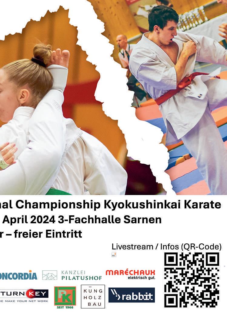 Sa. 06.04., 10:00, Sarnen Dreifachh. Kyokushinkai Karate -Vollkontakt Internationale Meisterschaft 2024