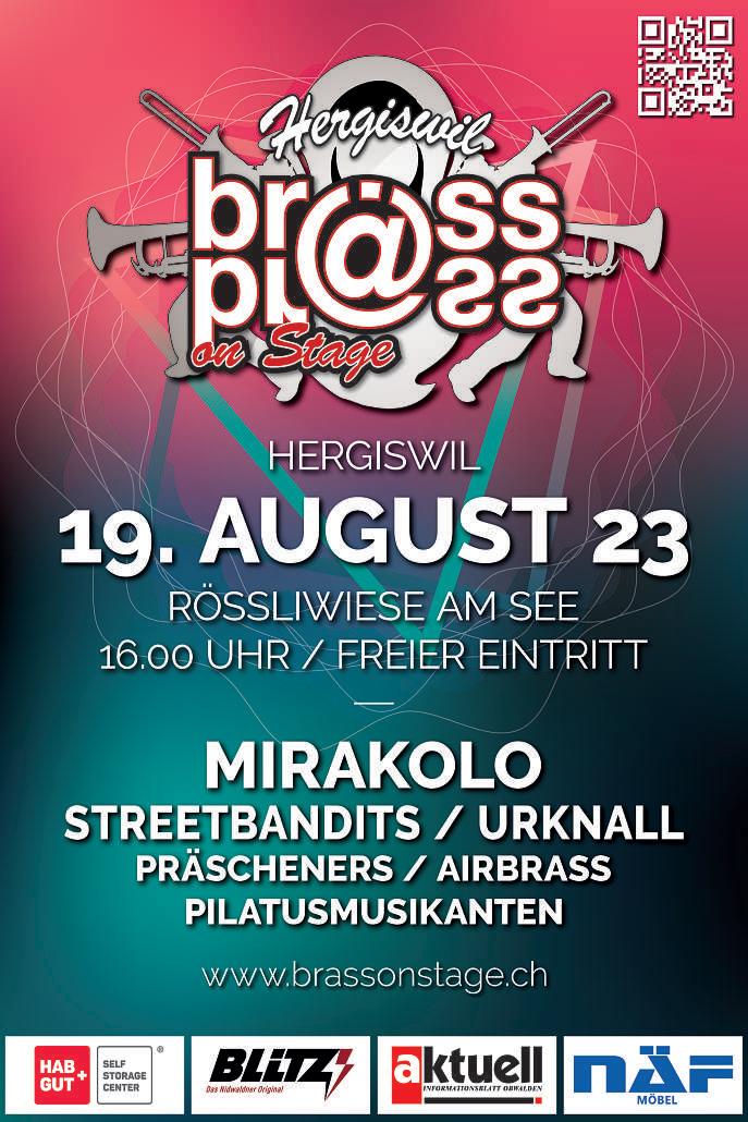 Sa. 19.08., 16:00, Rössliwiese am See Brass on Stage Hergiswil Mirakolo u.v.m., freier Eintritt