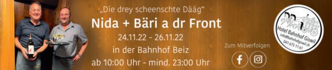 Do. 24. So. 27.11., Flüeli-Ranft Metzgete im Rest. Die Weinstube Samstag mit Höck und Trio Tschifeler