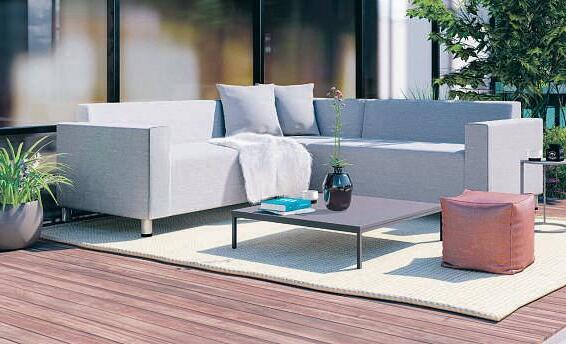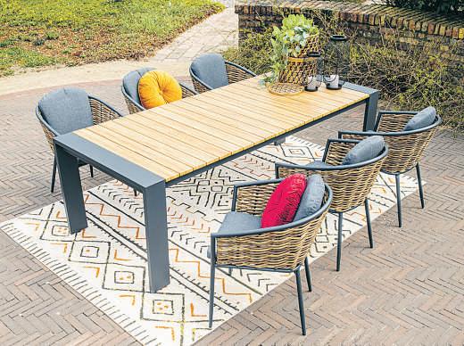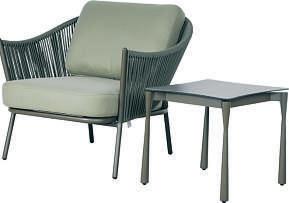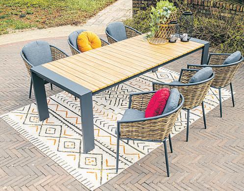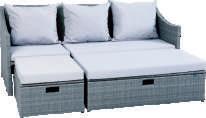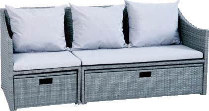 Paris Kunststoffgeflecht anthrazit, Innengestell Metall pulverbeschichtet, Kissen Polyester grau, Bank klein: 64 x80x70cm, Bank gross:124 x80x70cm, Hocker klein: 57 x31x60cm, Hocker gross: 118x31x 60 cm
