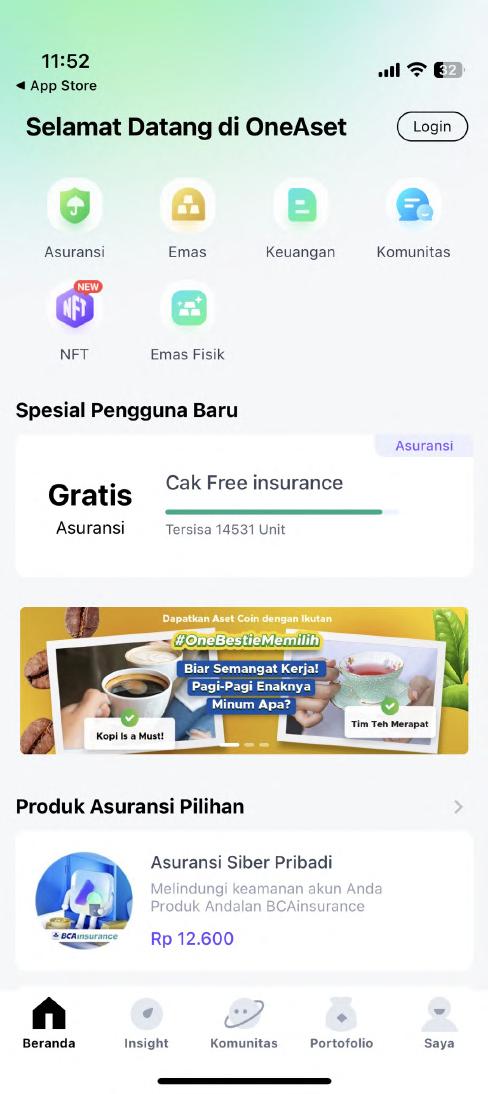 2月 正式推出了 OneAset, 专注于为个人投资者提供丰 富的理财产品交易服务以及 理财交流社区。
