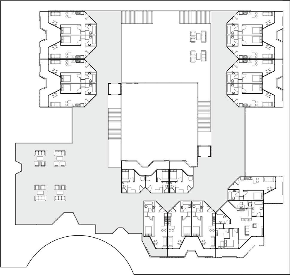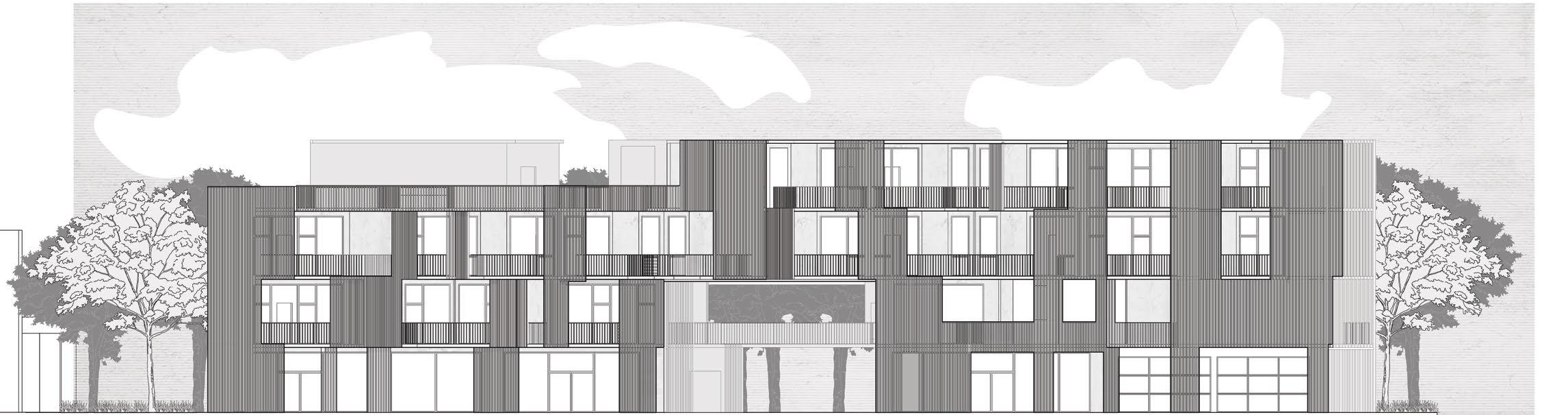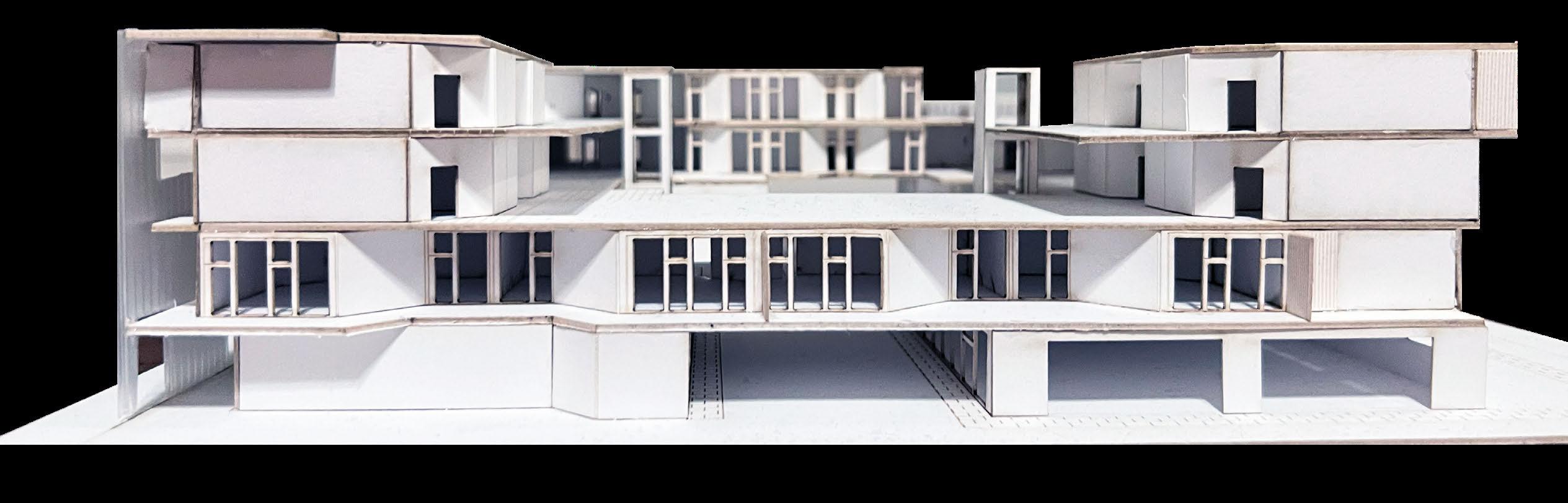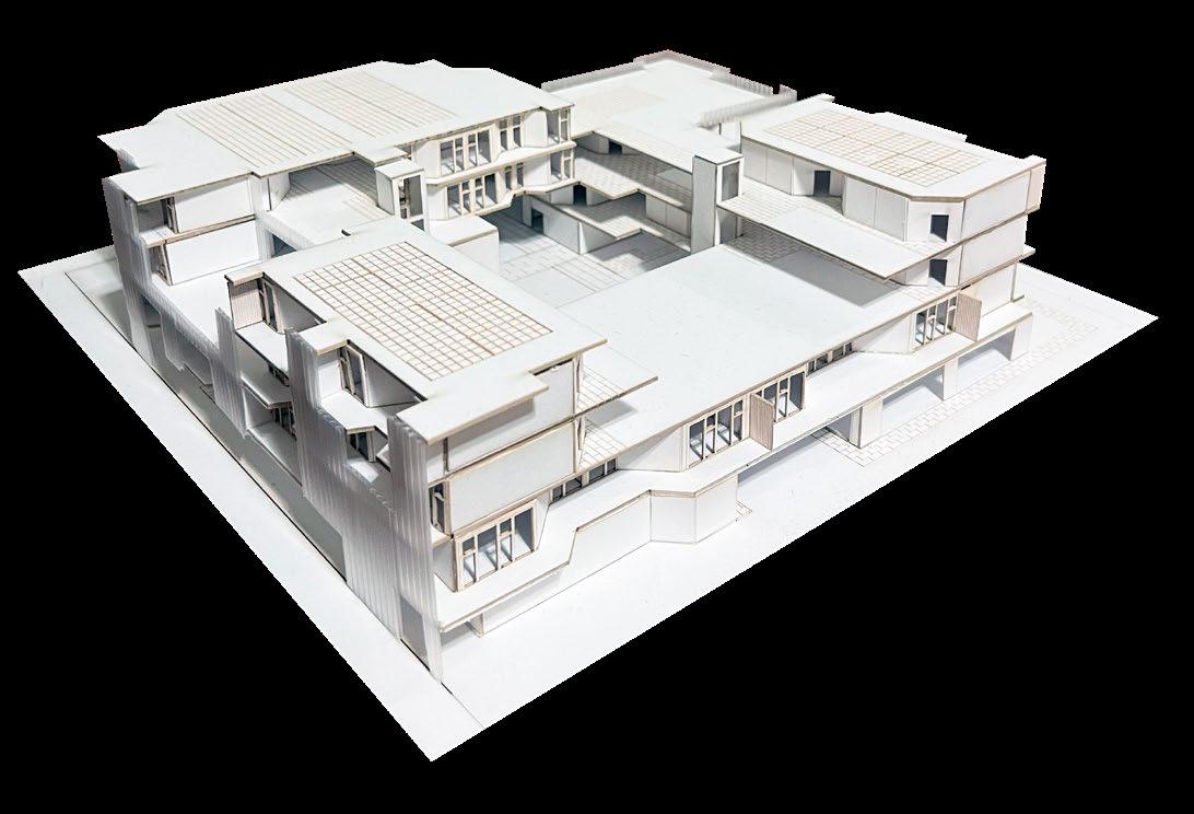 The design of the two housing units emphasizes complementarity, creating an architectural dialogue that fosters interaction between neighbors. By incorporating shared outdoor spaces, semi-private courtyards, and interconnected walkways, the layout encourages casual encounters and a sense of community. The strategic placement of windows, balconies, and entryways allows for visual connections while maintaining privacy, ensuring that residents feel both connected and comfortable. Thoughtful spatial organization, combined with flexible communal areas, promotes social engagement and strengthens neighborhood bonds.