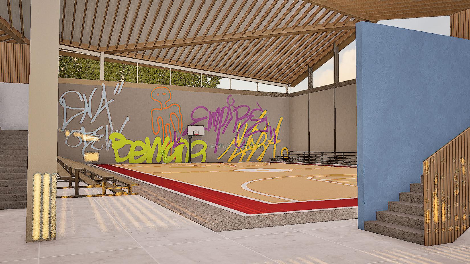 The project is a community basketball facility located in Pasadena, California. Community sports facilities, if carefully programmed and designed, can function as social condensers and draw participation from many segments of the populace. To this end, I reformulated and re-programmed portions of the project to serve identified community needs, suiting the social purposes of the individual project and evolving uses over time.