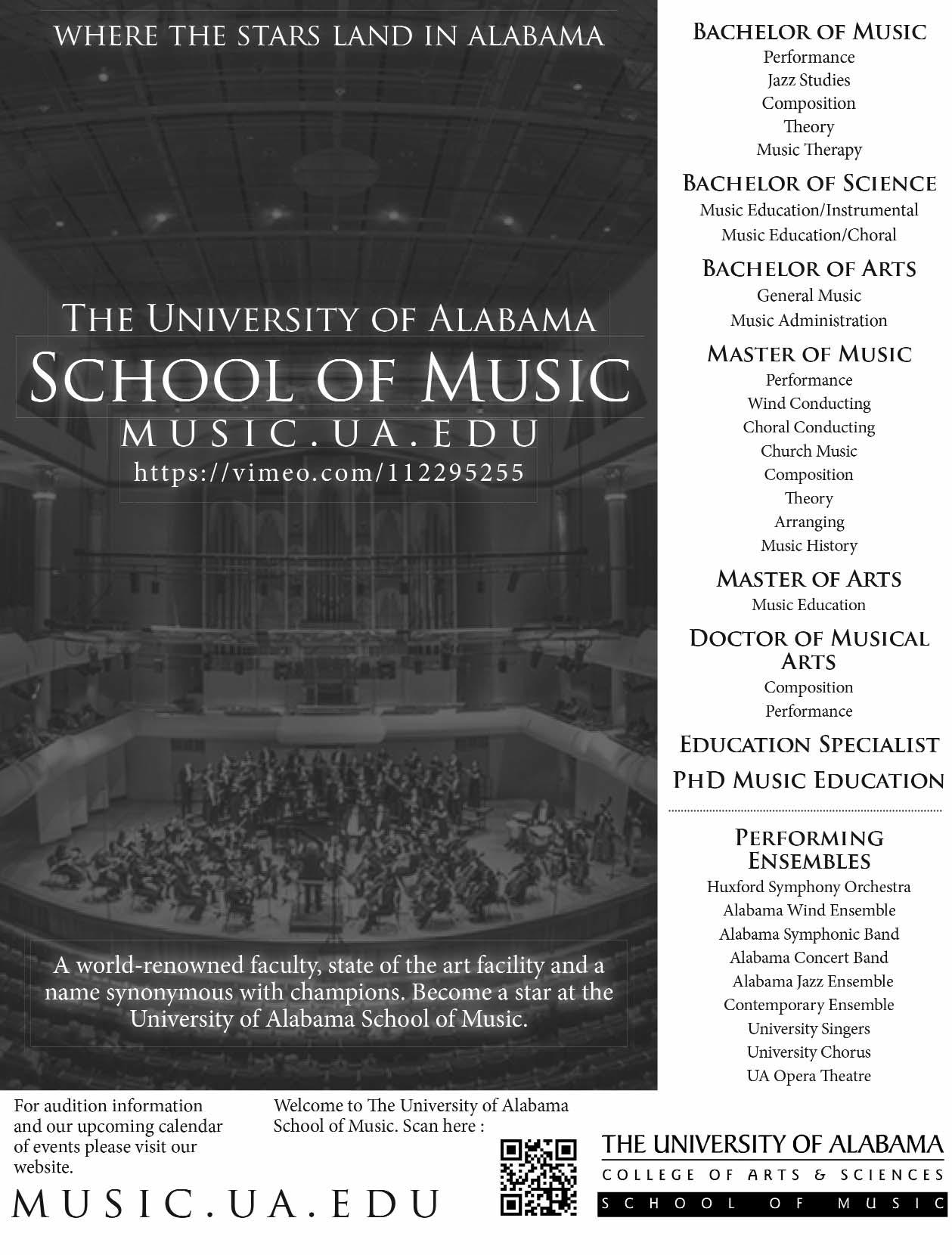 uah.edu/music facebook.com/uah.music Th U i fM D AH eigh tionalA Na anda tion na profe compose musicia forman er 0 p andover15 numero music t hoolsofM c f S tiono ssocia A tionalm titu reditedins anacc no y re tionall ndinterna y a all y ualit r q ssionals.Notedfo ndm , a hmusicians hurc , c rs forme per as areers c for ns t ca us tmento eDepar ear h y ceseac ensembles, us fer eof , w Music memberofthe y, ownedfacult tionby truc ins y tr musicindus tors, a educ rs, prepares facebook h.edu/m ua .com/uah.music usic