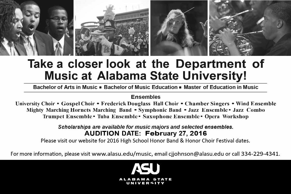 Welcome to the 2016 Professional Development Conference and the great city of Montgomery. With a host of sessions, performances, and exhibits involving participants from throughout the state and across the country, we hope you enjoy this occasion to energize your passion for teaching, reconnect with colleagues, make new acquaintances, and revitalize your commitment to the profession. The AMEA Governing Board and officers of our divisions worked tirelessly to organize a meaningful professional development conference for all Alabama music educators. I know you will be inspired to explore different approaches to instruction that will enhance your practice and directly benefit students in your classrooms.