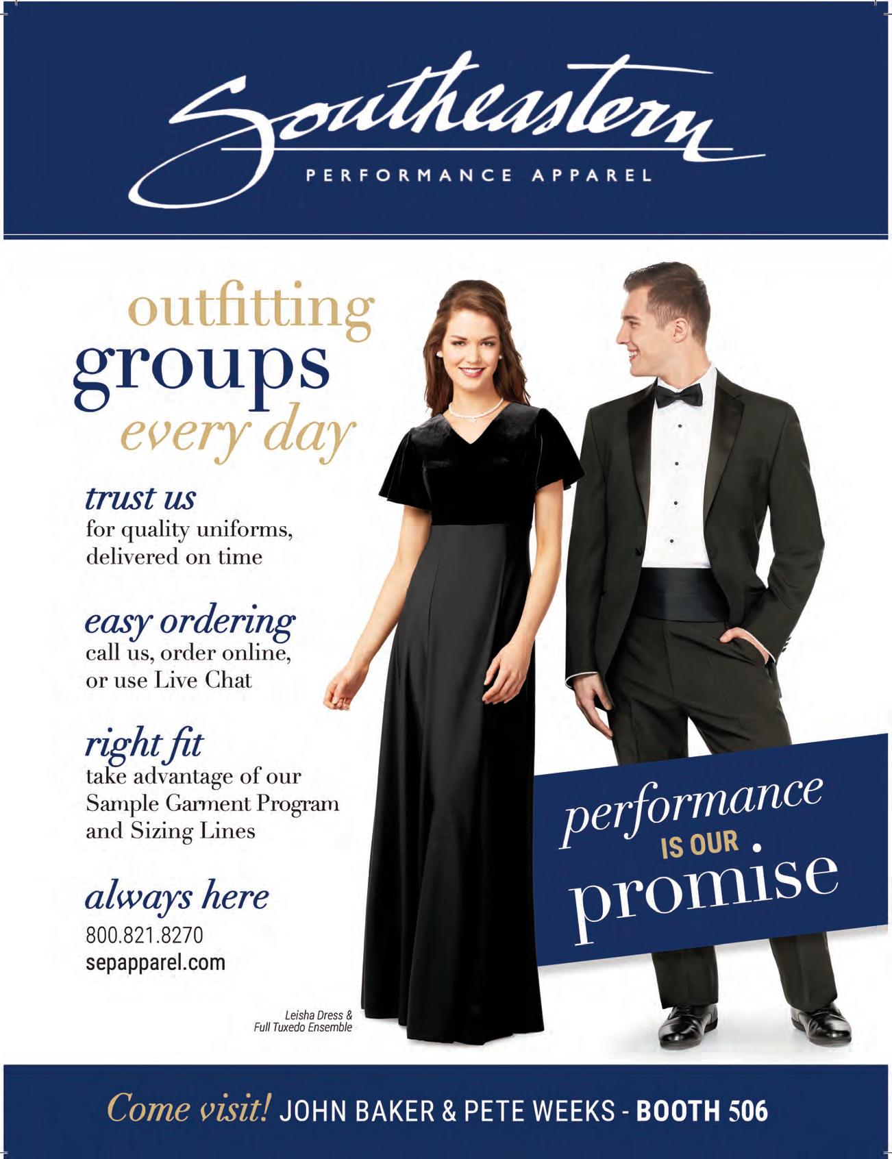 Performance is our Promise! Southeastern Performance apparel has been a leader in the Performance Apparel Industry for over 30 years. We manufacture and provide quality concert wear for Bands, Choirs and Orchestras in all 50 states and around the world. Booth 506