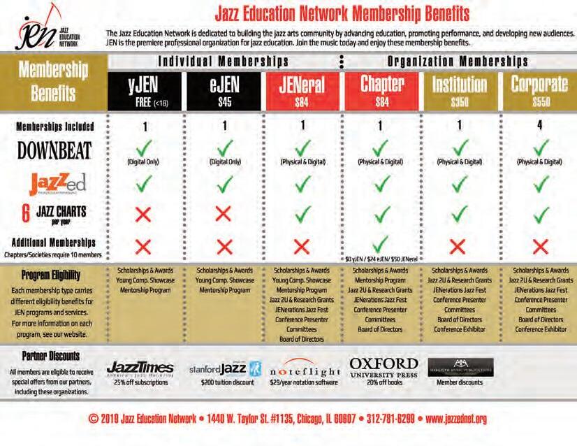 Chart to decide which membership is right for you. To join via phone, call 312-781-6299, option 4 to speak with the JEN Membership Manager, Jesse Nolan or email membership@ jazzednet.org