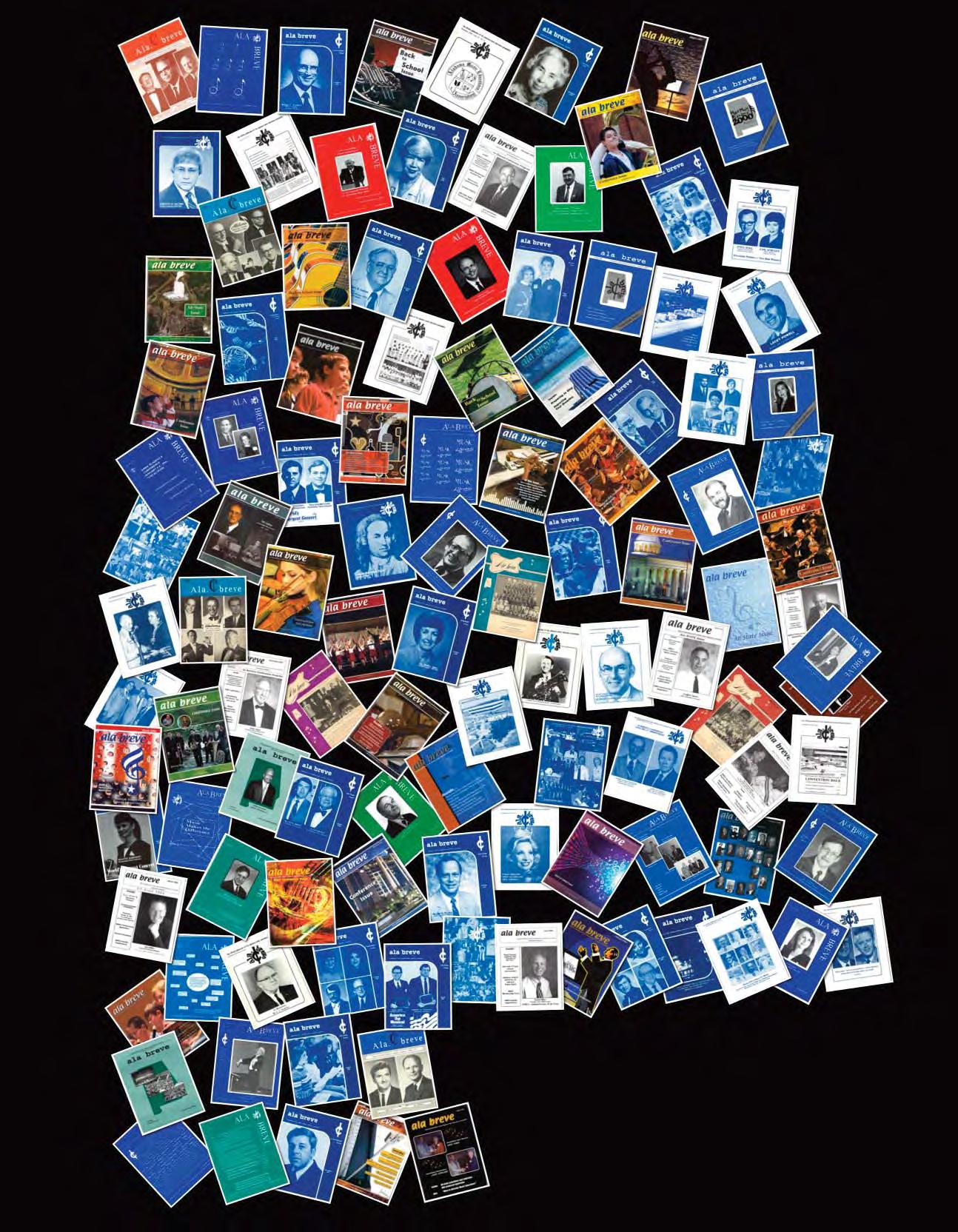 Through the years, the covers of the Ala Breve have undergone several changes and are filled with interesting trivia. The collage we created on the cover of this issue includes many