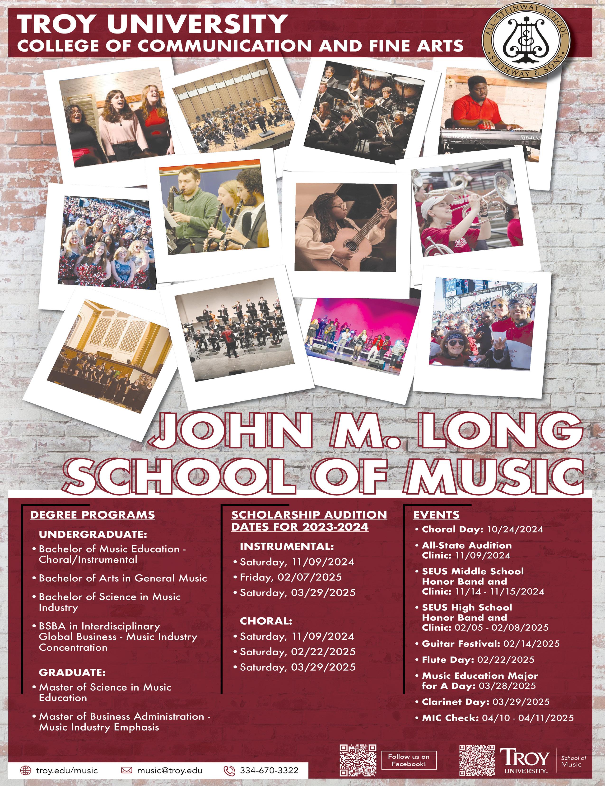 The University of North Alabama Department of Music offers scholarships to qualified music majors and minors in all instrumental, vocal, and piano programs through auditions