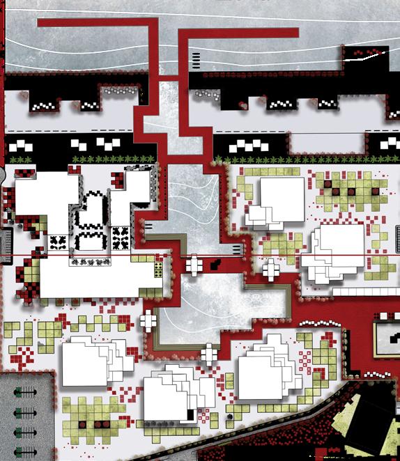 All the land uses existing in the site must be connected through a pedestrian network which emphasizes walkability. Not only a connection between the various zones in the innovation hub area but a linkage between the housing, the academic land use and the Innovation Hub.