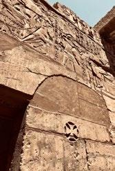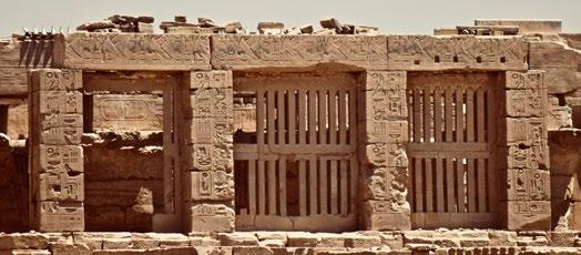 Ptolemy III built the gate north of the temple of Khonsu, called Bab Al-Amara (figure 24), which translates to the door of the moon symbolising Khonsu, as he is considered the god of the moon (Weeks, 2005). The moon gate is 21 meters high, and is decorated with hieroglyphics that protects the Karnak of evil spirits. The moon gate in turn creates a threshold that represents the gods refusing the entrance “to human enemies and to demons and the powers of pestilence” (Eliade and Trask, 1987). In my opinion, when touching the sandstone of the gate, the material quality evokes a nostalgic feeling of the embodied energy of the realm of the divine that the stones carried.