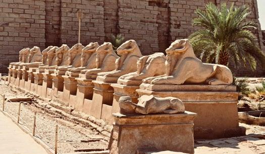 The quay then leads to an avenue of 38 ram-headed sphinxes (figure 6) known as criosphinxes that directs the visitor to the complex’s entrance. The ram headed sphinxes symbolised the god Amun who was widely depicted as a ram headed man. The avenue was used as a tool to connect the Karnak with Medinet Hebu, the Temple of Luxor and the Temple of Queen Hatshepsut during the Opet Festival. At that time, the priest and the cult members would visit the temples in Thebes to honour the god Amun and his family. From that came the avenue’s name as ‘the way of the offering’ (Baines and Málek, 2005,).