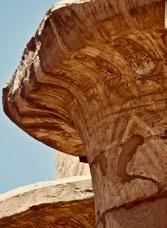 The Hypostyle Hall encloses a total of 134 columns designed to look like the papyrus symbolizing wealth; as the plant was only available to the elite. Along the main west/east processional axis of the temple lays 12 open papyrus columns (figure 33), 23-meter high. The 12 columns resemble the shape of a papyrus plant with an open flower. The capital of the column is shaped like an inverted bell, and is ornamented with colourfully painted leaf designs (figure 36) that symbolizes the petals of the river Nile papyrus (Sullivan, 2008). Contrastingly, the remaining 126 are closed papyrus columns (figure 34) stand at 15 meters, and are arranged in nine rows of seven along the two halves of the hall (Seton-Williams and Stocks, 1988). The closed papyrus columns represent an un-bloomed papyrus plant. Sullivan, 2008 states that these types of columns in the great Hypostyle Hall are more “stylized” than the regular closed papyrus, as they are designed with a straight shaft and slightly angled capitals. In addition, the bases of the 126 columns are originally painted with triangular depictions of papyrus leaves. The columns of the hall are used to support a roof that covered the entire hall, but have collapsed due to earthquakes.