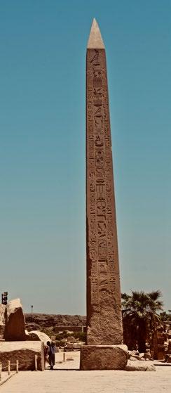 Obelisks were originated in Ancient Egypt. They were monoliths made of stone that reflected the rays of the sun. The origin of the obelisk’s shape is from a stone called the Benben (figure 41). The Benben was a pyramidal stone which is associated to the Egyptian myth of the mound of creation in which land was created when the primordial sea touched the light of the sun (Sullivan, 2008). During the pharaonic era 9 monoliths pierced the skies of Thebes in Karnak. However, only two stand today, one built by Thumois III (figure 42)which is 22 meters tall and 1.8 meters square next to the third pylon. The other one was built by Hatshepsut (figure 43), and it is 30 meters tall and 2.6 meters square between the fourth and the sixth pylon (Weeks, 2005). By looking at the position of the obelisks in the floor plan of the temple, they are situated approximately in the centre. In my point of view, this relates to the Axis Mundi theory that the obelisks were used like landmarks as a “projection of a fixed point-the centre- equivalent to the creation of the world” (NorbergSchulz, 1993)