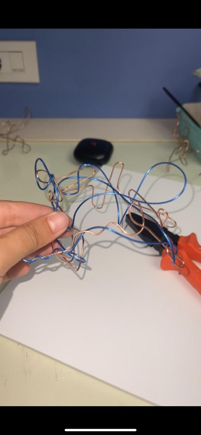 This week, we had to pick three songs and make wire statues of what these specific songs make us feel. We were supposed to use on line of wire to describe our emotions.