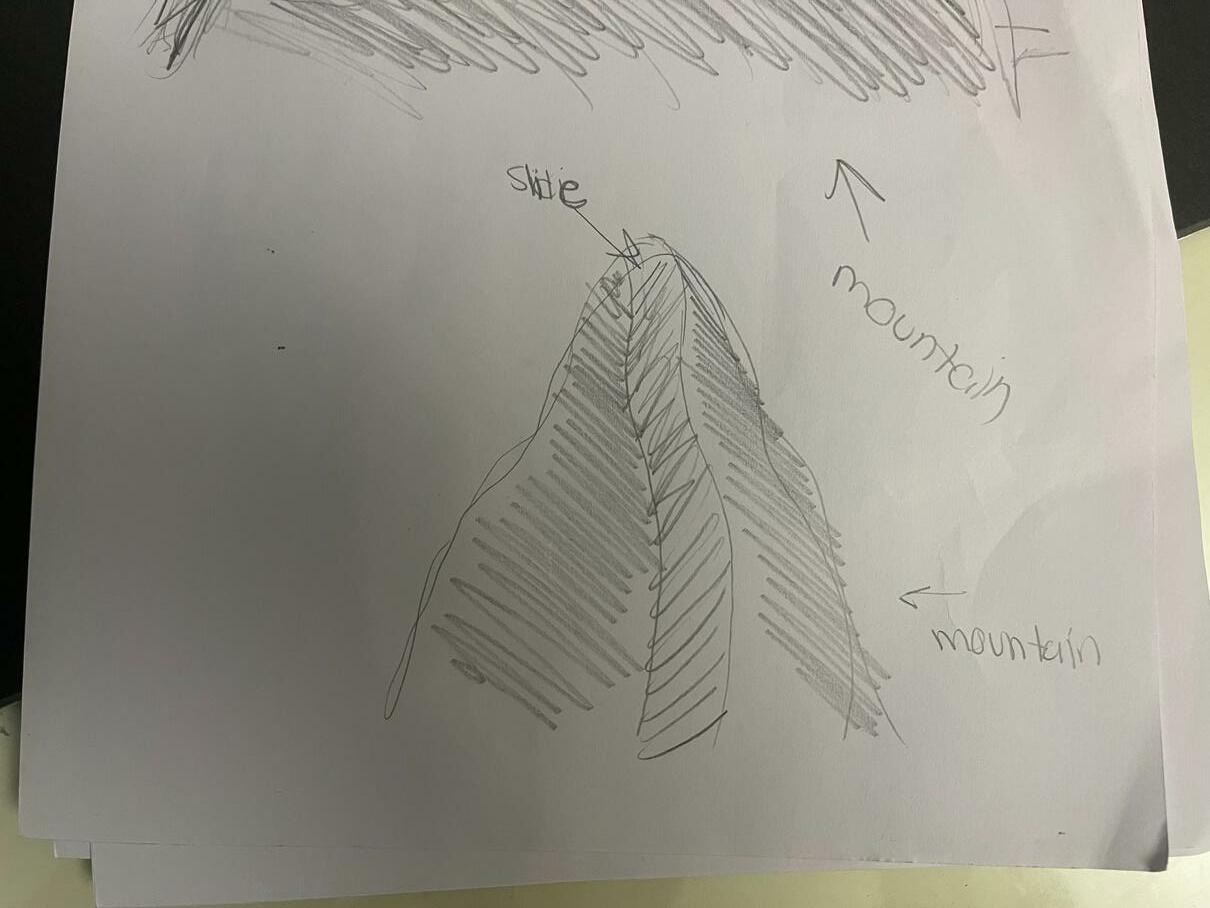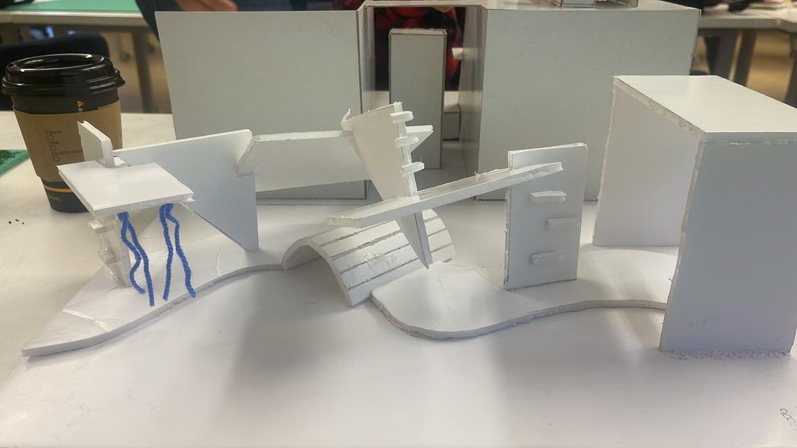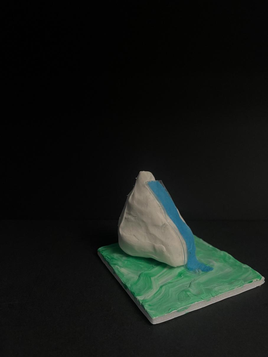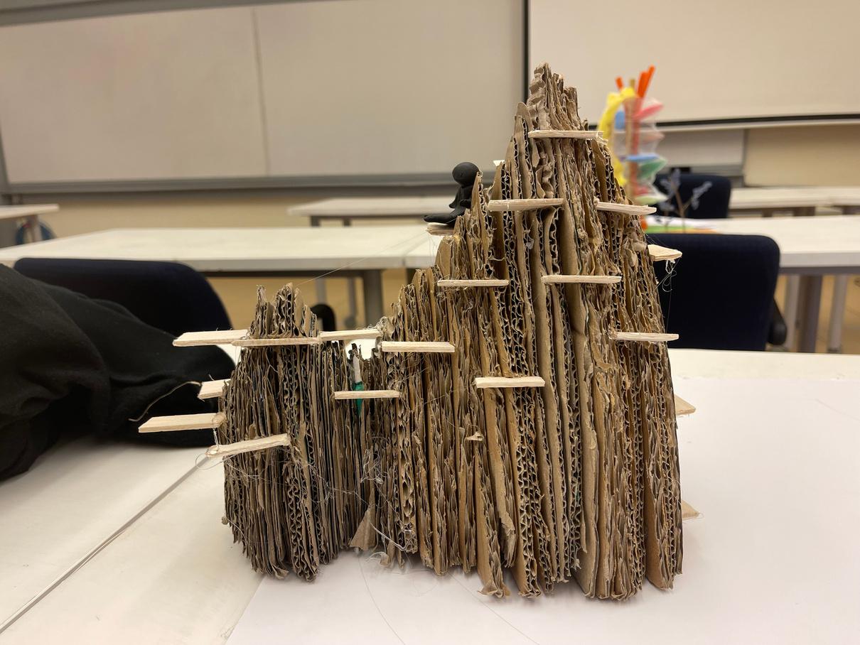 Feedback: I tried to show what i needed to show; a mountain along the green scape of the Cultural Park. The mountain had a slide on one side, like a waterfall, and the stairs on the oppoite sides. I used clay, wre and paper.
