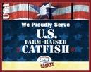 Those signs flash royal blue stars and red and white stripes embossed with “We Proudly Serve U.S. Farm-Raised Catfish” across the center. That’s a symbol for safe, high-quality fish, Barlow said.