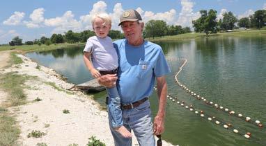 Sid Nelson, right, raises U.S. Farm-Raised Catfish in Sumter County. Nelson, the Alabama Farmers Federation State Catfish Committee chair, produces high-quality fish that’s inspected by the U.S. Department of Agriculture. Nelson farms with his son-in-law, Denzil Dees, and shares his love of aquaculture with his grandson, Kirk.