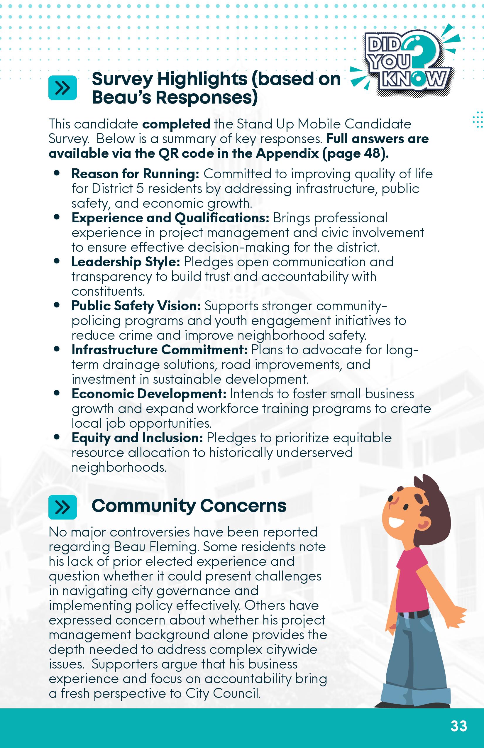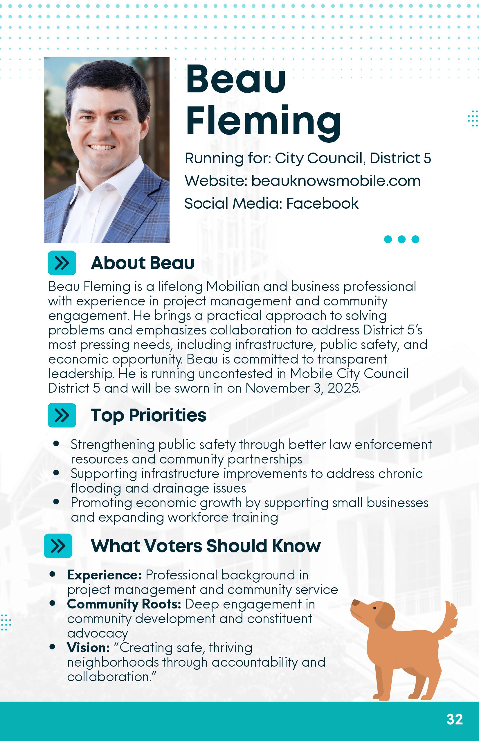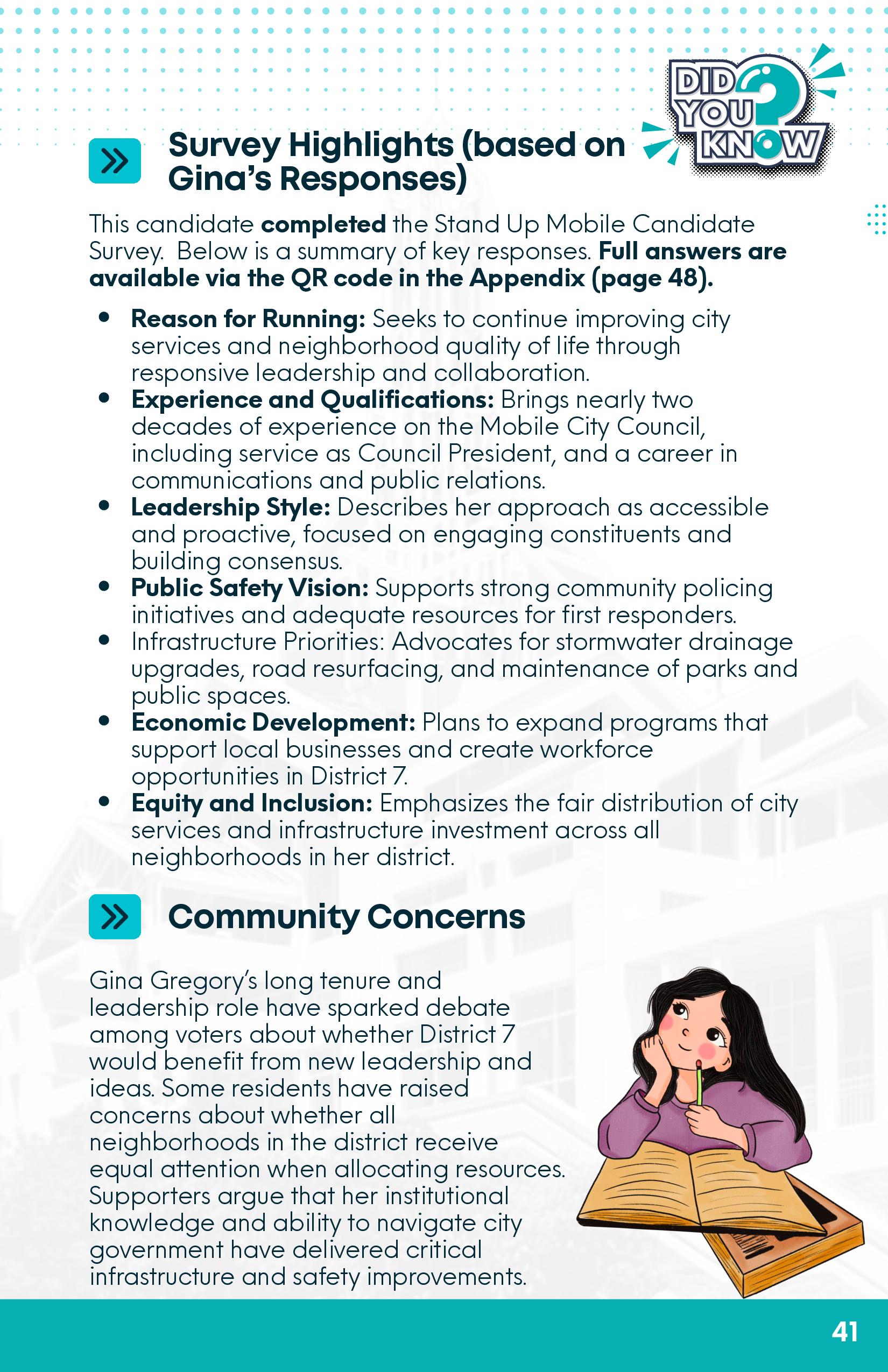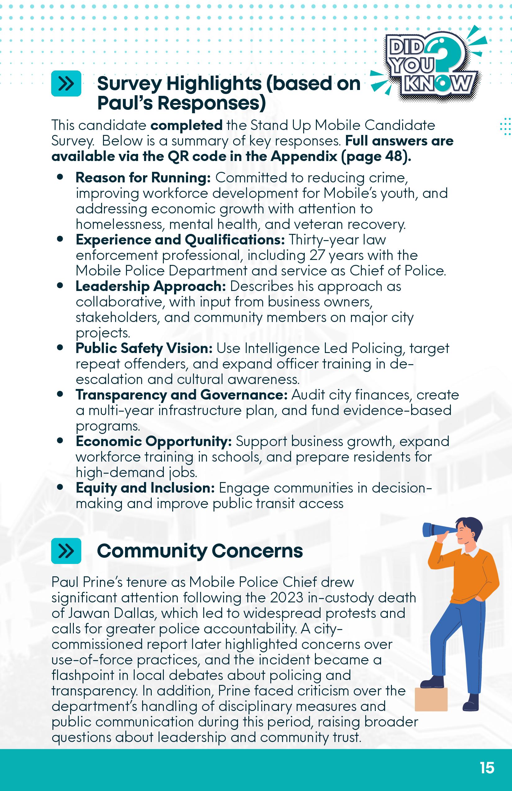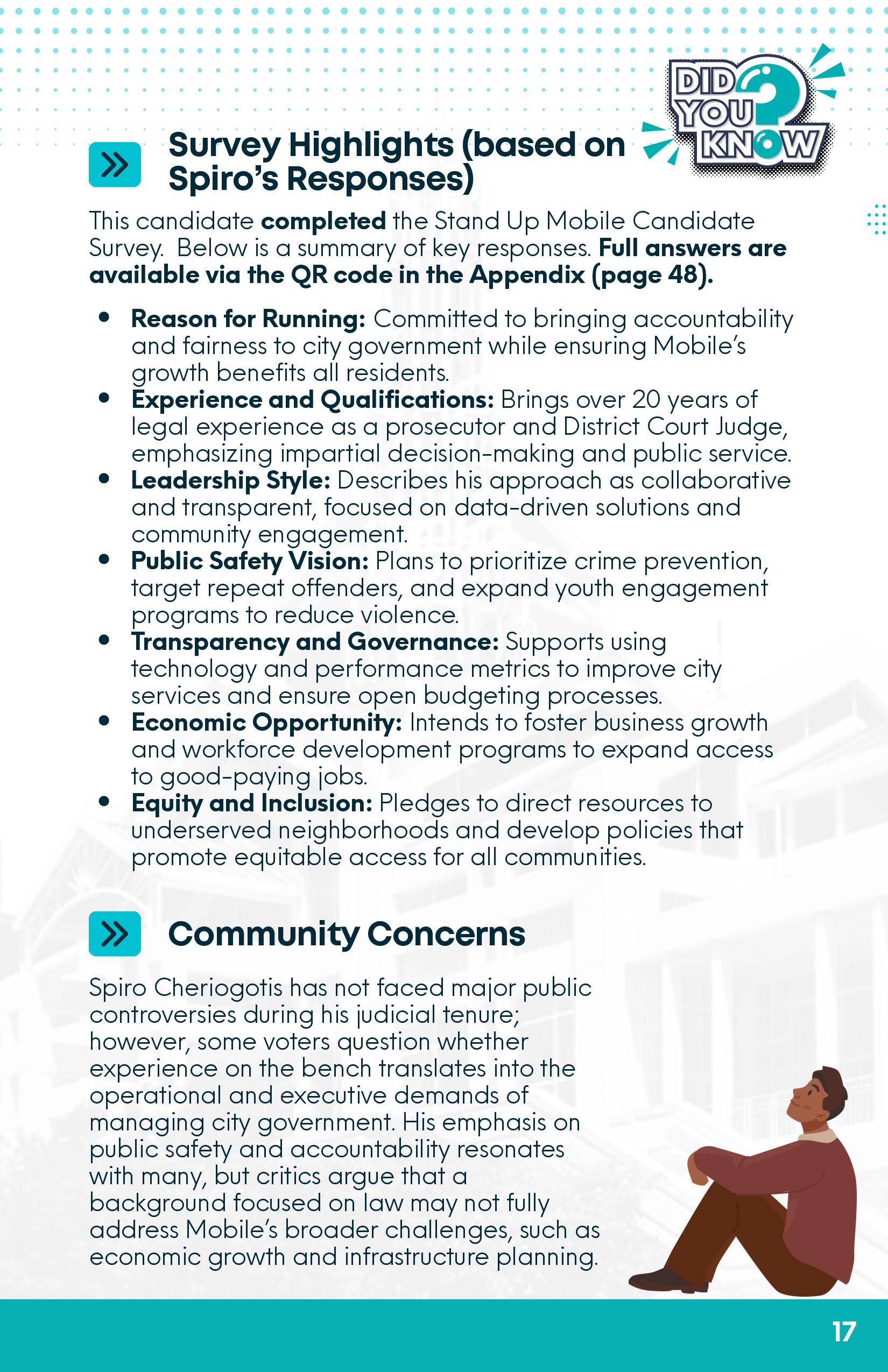 Stand Up Mobile created this nonpartisan guide to break down the voting process, make it plain, and help you feel confident casting your ballot. Inside you'll find information about voting logistics, key dates, the candidates, city government 101, how city hall impacts your neighborhood, and ways to get involved.