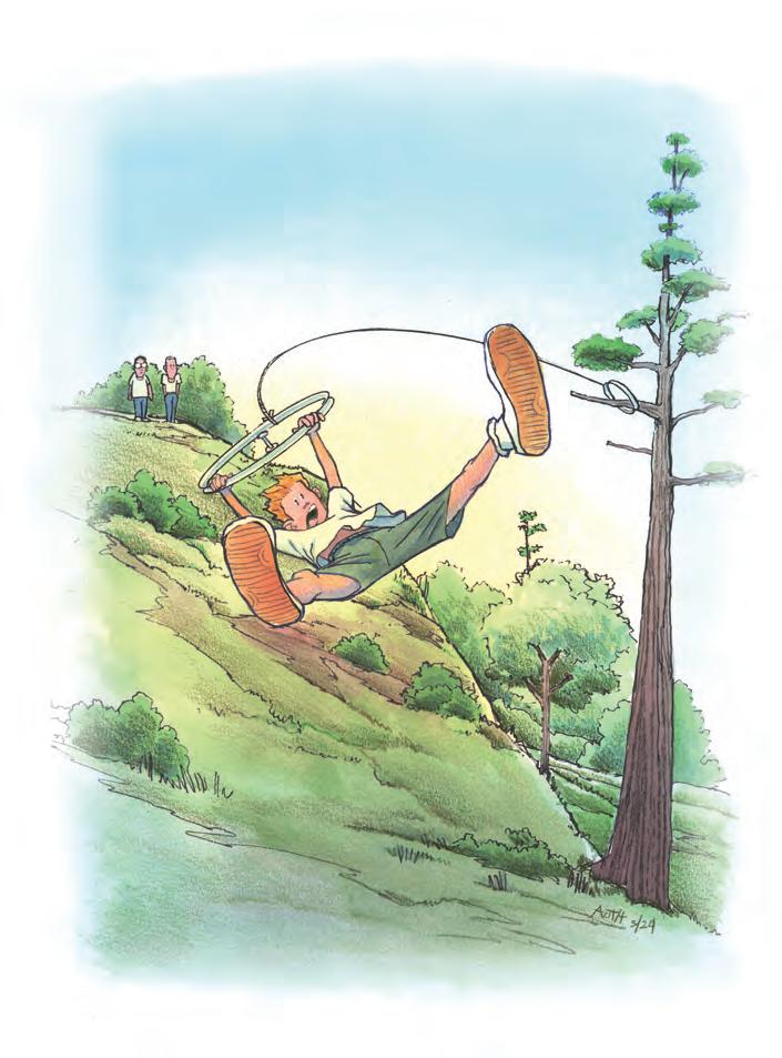 Kids from all over knew about The Swing, but not everyone tried it. It looked dangerous - and it was. Because of the angle of the tree and the slope, you could easily attain heights of 20 feet on your ride, over 30 if you took off fast enough. And you had to deal with centrifugal force when sticking the landing. As a result, some boys wouldn’t take the risk. Being called a chicken was a small price to pay to avoid a trip to the hospital.