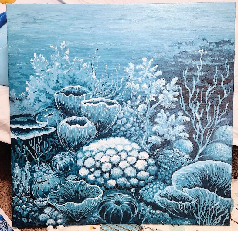 My monochrome acrylic painting of coral, inspired by the beauty of