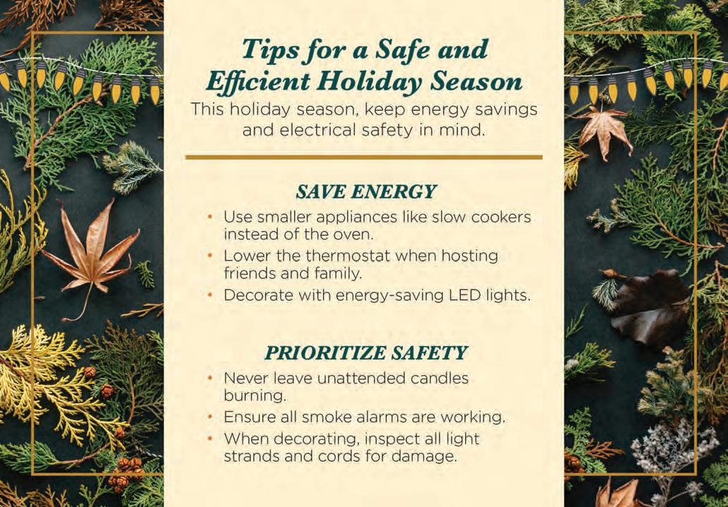 of these energy-saving and safety tips into your holiday plans. We are here to help you with safety and savings year-round.